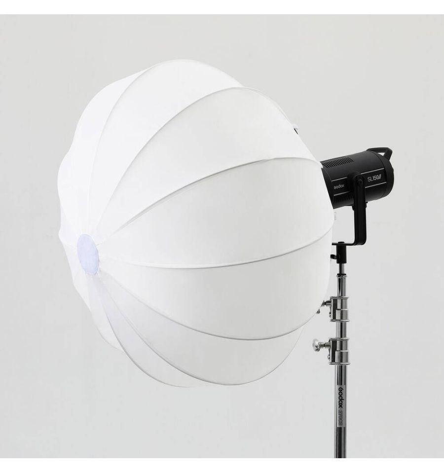 Ideal para usar en el techo o para elevar el nivel de iluminación ambiental, la Softbox de linterna plegable de Godox de 85 cm (33,5") de diámetro tiene la misma calidad de luz omnidireccional que las "China Balls" de antaño, pero está construida con materiales duraderos y tiene accesorios como un Juego de faldón opcional para controlar la extensión del haz de 270°. La linterna tiene un soporte Bowens que se adapta a luces Godox como las series SL150 II, UL150 y VL, pero también es compatible con muchas otras luces que utilizan este popular soporte.