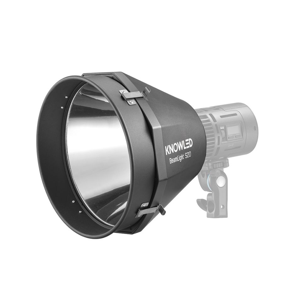 El Godox BeamLight S20 es un hiperreflector diseñado para maximizar la potencia y precisión de las luces LED MS60Bi y MS60R. Con un ángulo de haz enfocado de 5° y un interior plateado, intensifica la salida de luz para lograr una iluminación direccional de alta intensidad, ideal para retratos, productos o escenas de acción. Su diseño robusto y elegante, junto con una montura patentada que permite una fijación directa sin accesorios adicionales, lo convierte en una herramienta versátil y profesional para estudios, exteriores o sets de filmación.