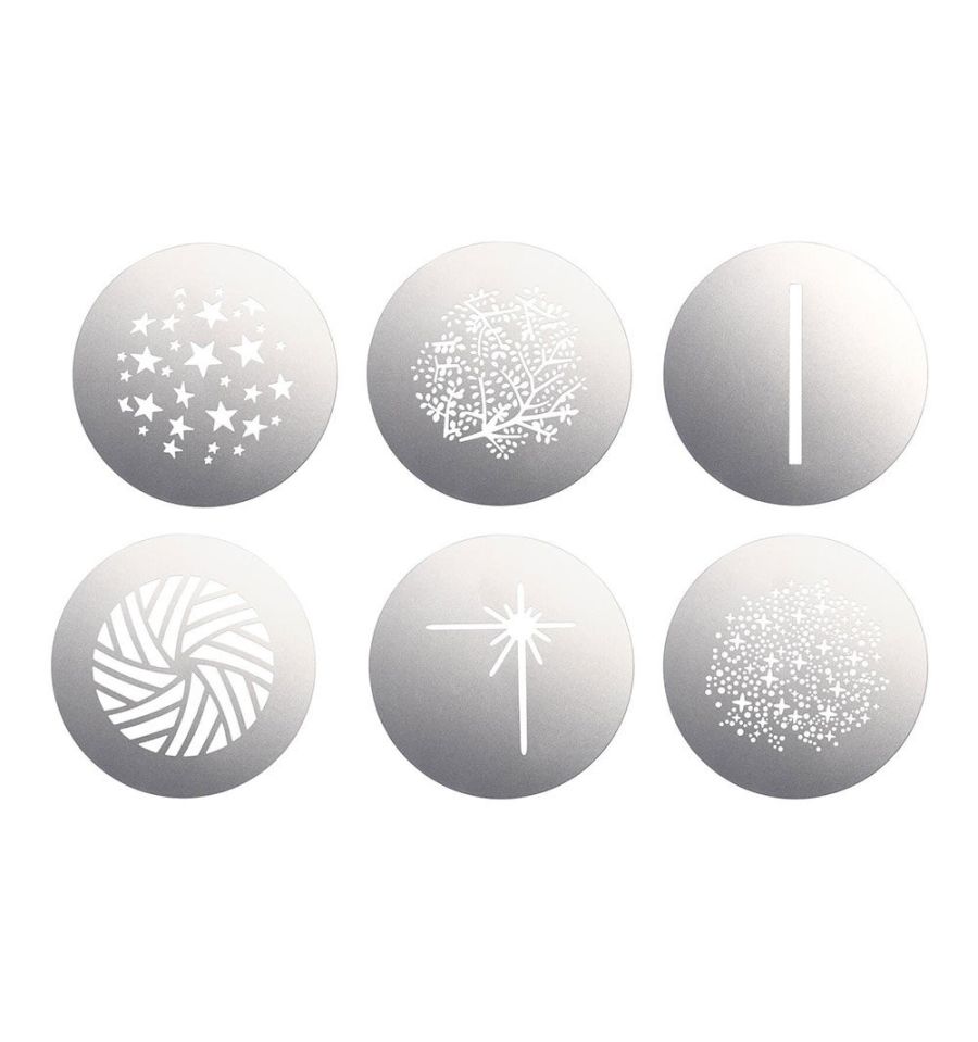 En resumen, el Conjunto de Gobos Godox SA-09-003 consta de seis gobos diferentes que añaden diversos efectos a tu iluminación. Estos gobos son compatibles con la luz de enfoque Godox S30/SP36K/50K y solo se pueden instalar con el soporte de gobos Godox.