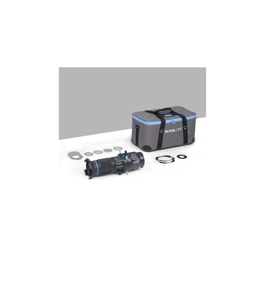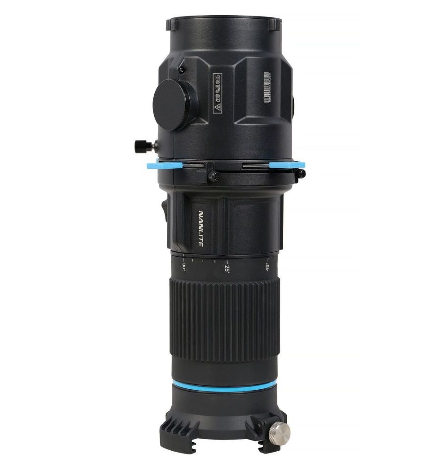 Diseñado para la precisión y la eficiencia, el accesorio de proyección para montura Bowens con lente de zoom de 25-45° de Nanlite cuenta con capacidad de zoom, lo que mejora significativamente el control. El accesorio de proyección permite un ángulo de haz variable de 25 a 45°, con una capacidad de enfoque que ofrece una mayor salida de luz. Es totalmente compatible con los accesorios de montaje estándar de Bowens de menos de 800 W, como los LED de las series Forza, FC y FS de la marca. Gracias al cilindro giratorio de 360°, el zoom no requiere la extracción de gobos ni obturadores. Un diseño conveniente y sin yugo de 6 lb le permite conectar el accesorio directamente al accesorio. Este accesorio de proyección es resistente al calor, ligero y compacto, lo que lo convierte en una herramienta útil para creadores en solitario y estudios compactos.