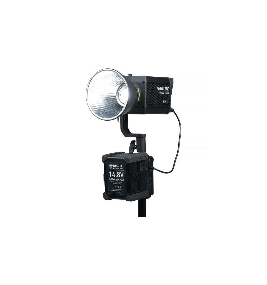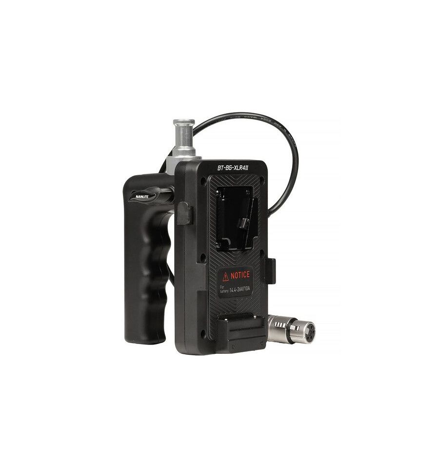 Diseñada para ampliar tu kit de herramientas Nanlite y ofrecer mayor flexibilidad de iluminación, esta empuñadura es compatible con baterías V-mount de 14,8 y 26V con conector D-tap y conexión eléctrica directa entre maneta y batería.