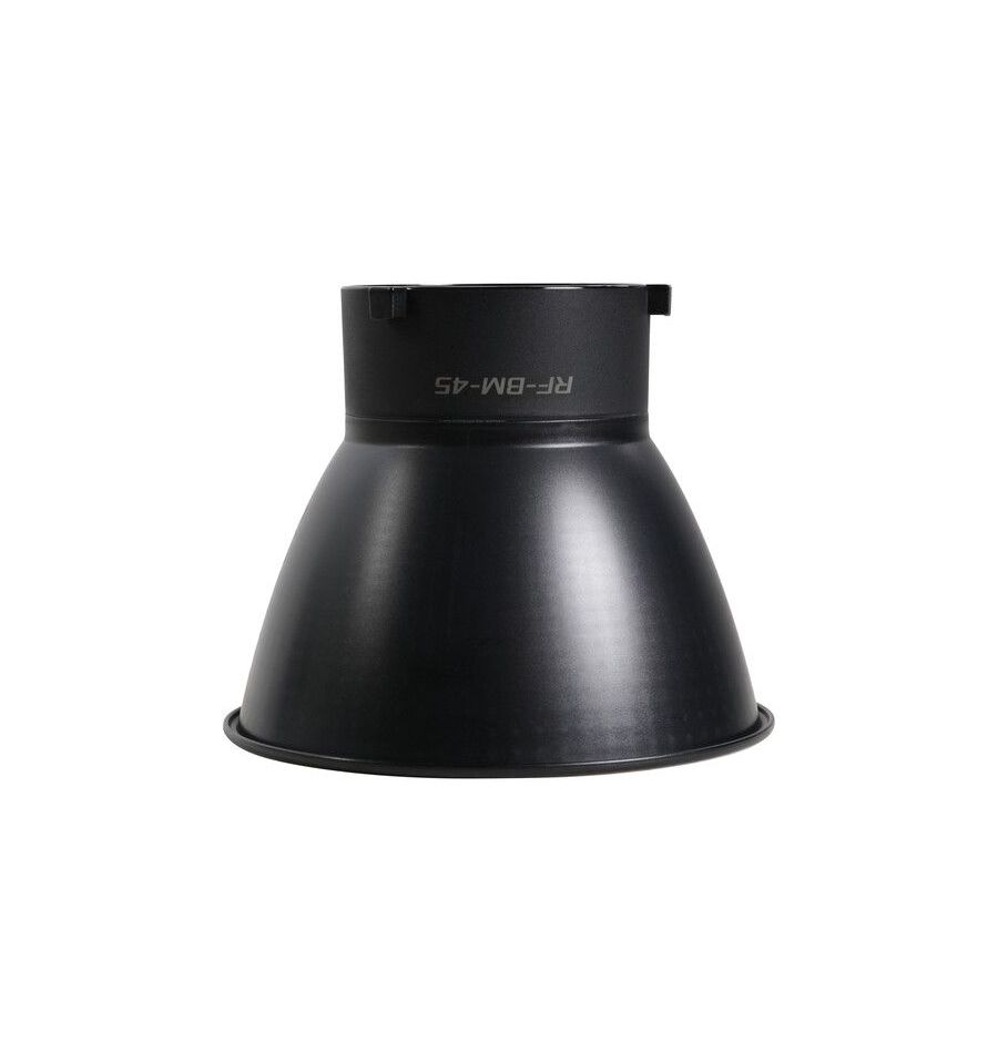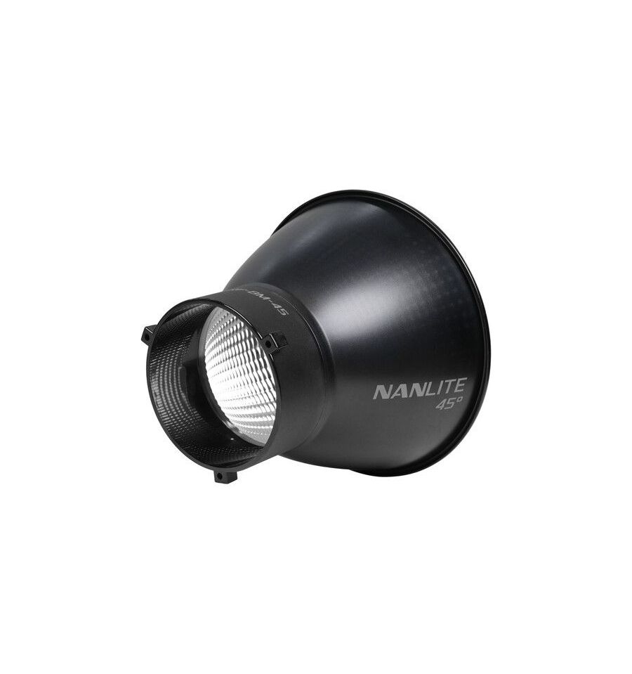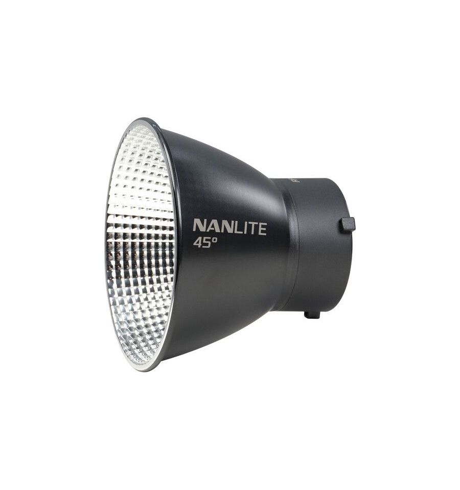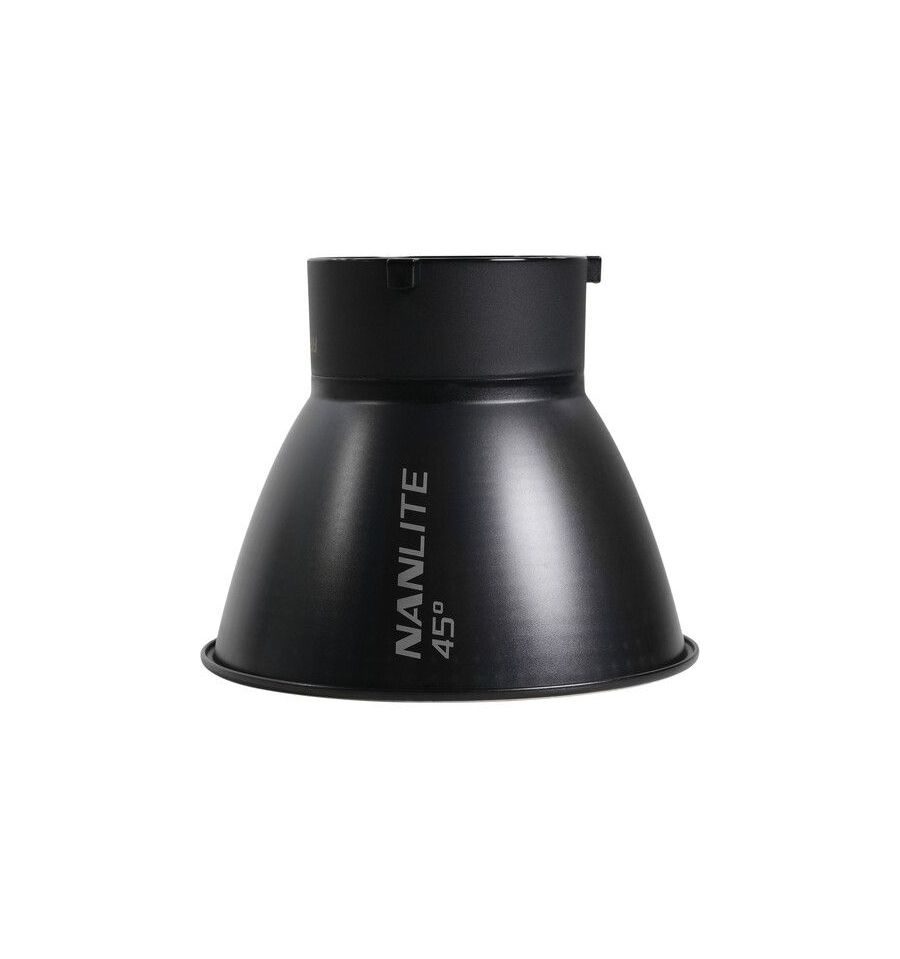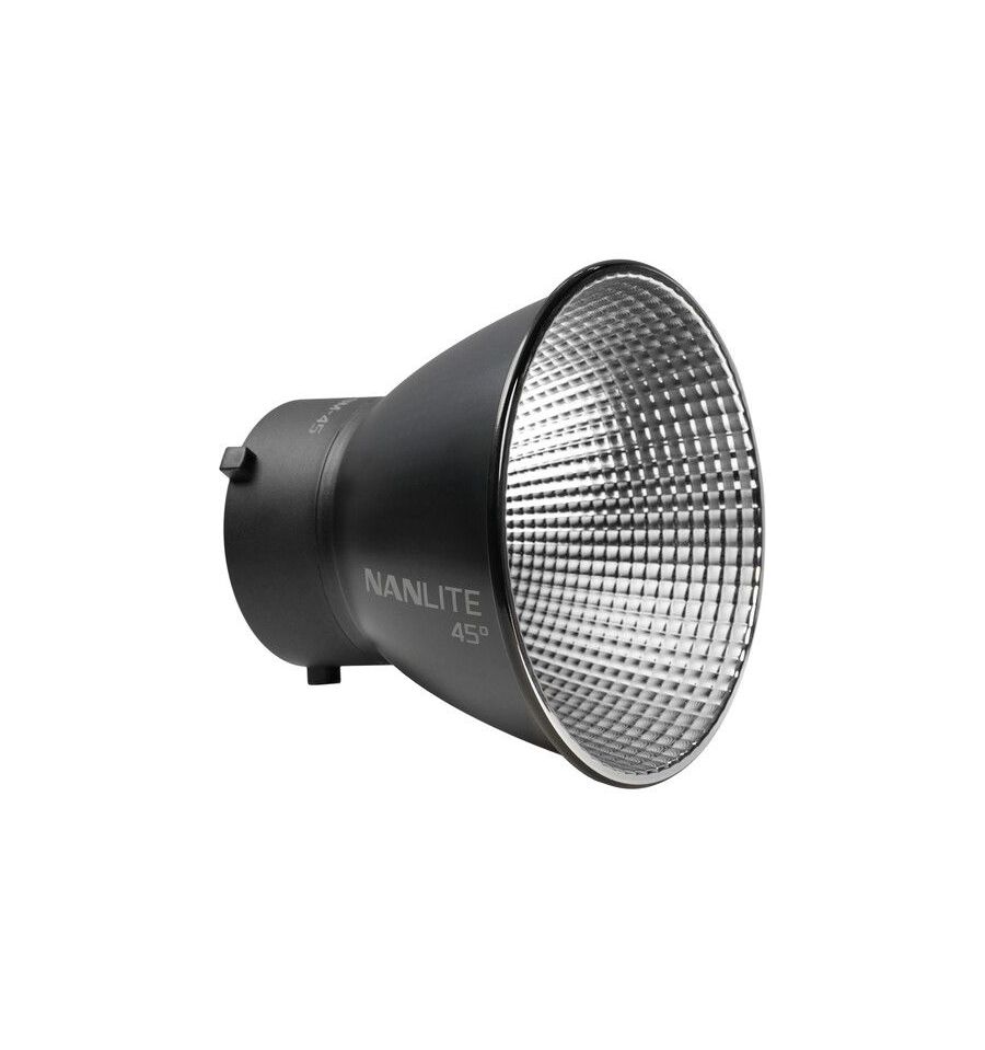 Este reflector de 45° de Nanlite es un modificador multiuso diseñado para su uso con monolights LED FS y FC. Construido con policarbonato ligero y duradero, este reflector cuenta con un interior plateado texturizado para dirigir eficientemente la luz hacia el sujeto. Con un soporte Bowens, es compatible con una amplia gama de accesorios.