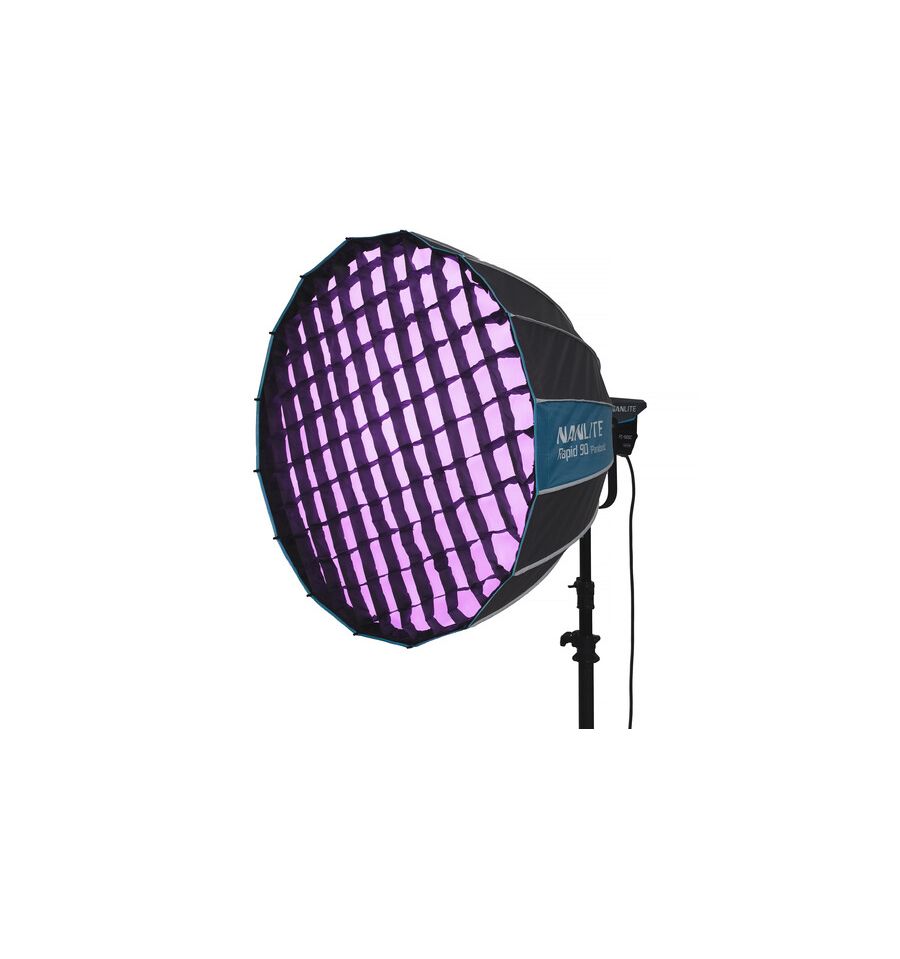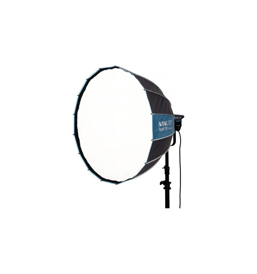 Nanlite Rapid Parabolic Softbox: Iluminación Profesional al Instante Descubre la eficiencia y calidad de las softboxes de montaje rápido de Nanlite. Disponibles en 90 cm y 120 cm, con anclaje de cierre rápido para una instalación instantánea. Incluye difusores, rejilla de nido de abeja y bolsa de transporte.