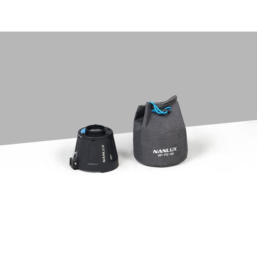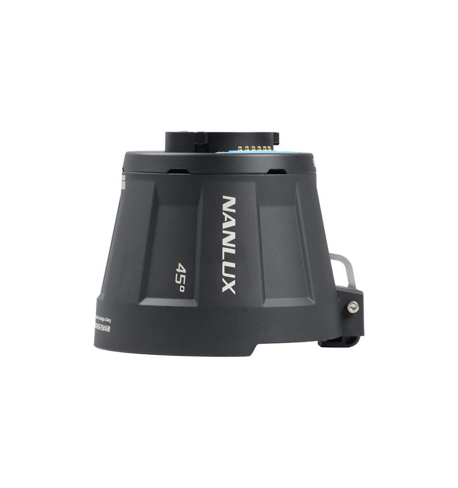 Este reflector Nanlux de montura FE con ángulo de 45° para el Evoke 150C estrecha el ángulo del haz y concentra la luz para intensificar la salida. Cuenta con contactos electrónicos que lo hacen totalmente compatible con el Evoke 150C. Cuando se utiliza con luces de montura FE, comparte información para optimizar el rendimiento del equipo. Fabricado en nailon reforzado con fibra y aluminio, presenta un exterior negro con interior plateado y es compatible con luces de montura FM.