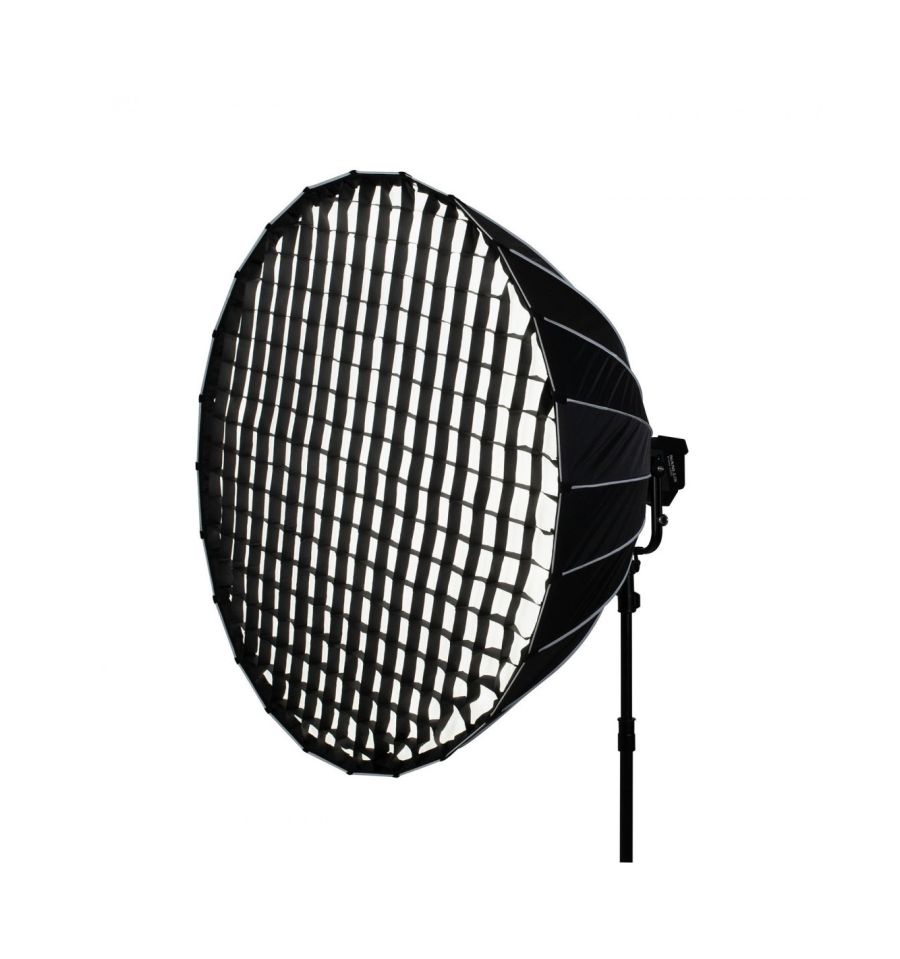 El NANLUX Softbox Parabolico 120 cm con montura NL está diseñado específicamente para la serie Evoke. Este SoftBox parabólico proporciona una luz uniforme y delicada. Incluye una rejilla que permite ajustar la dispersión del haz y el ángulo de iluminación, mientras que los difusores desmontables aseguran una calidad de luz suave. Su interior es de color plateado.