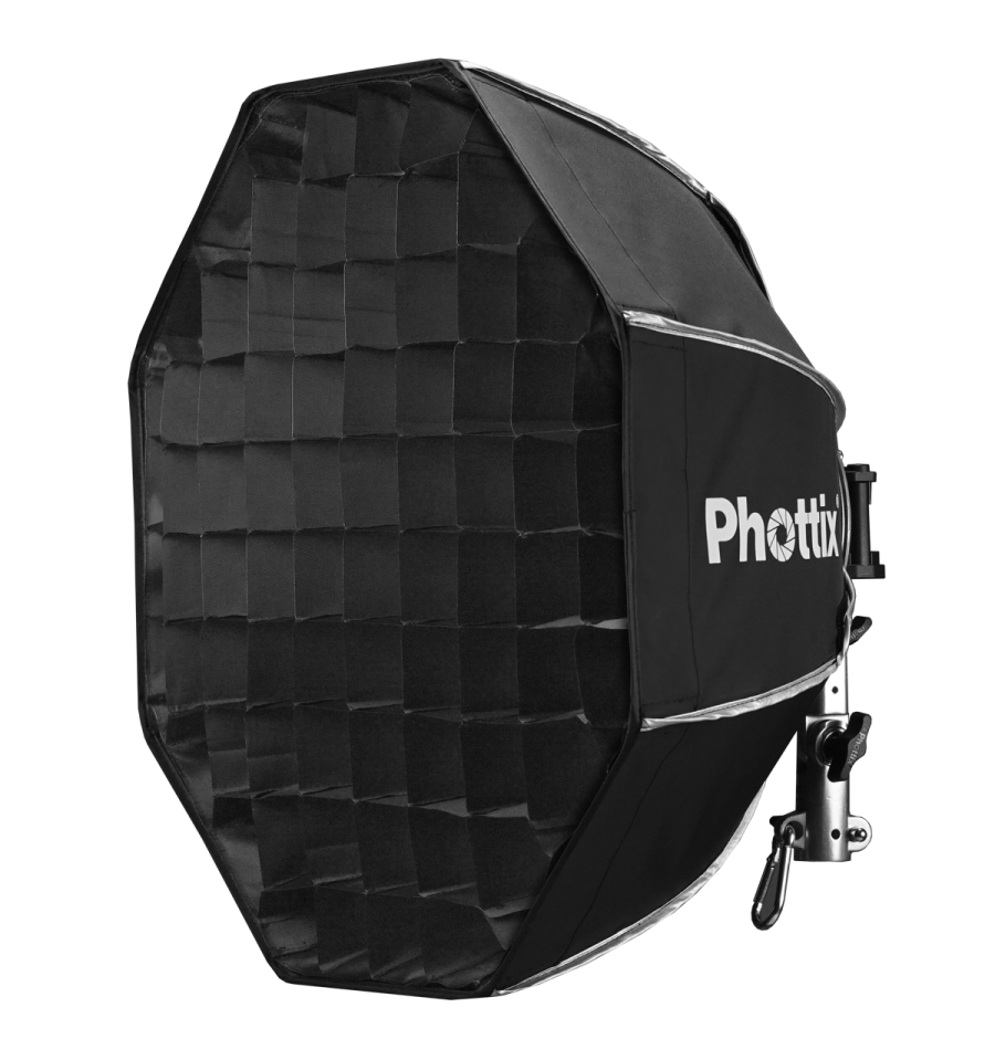 El Phottix Spartan es más que un simple plato de belleza: se transforma rápidamente en un softbox octa tradicional al reemplazar el difusor de metal con el deflector interno. Agregue el difusor exterior para aún más suavidad y la rejilla para hacer que la luz sea direccional. Todo con la velocidad y facilidad que harán de Phottix Spartan su primera opción en modificadores de luz.