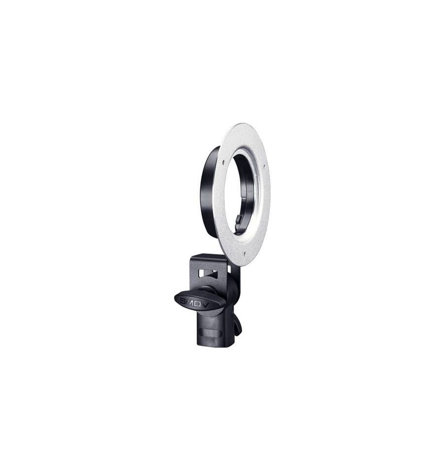 Este adaptador de montaje de SMDV le permite montar un Speedbox SMDV en un cabezal de flash Bowens. El adaptador se conecta al anillo de velocidad de aluminio incorporado del Speedbox y permite que el Speedbox gire para posicionarse.