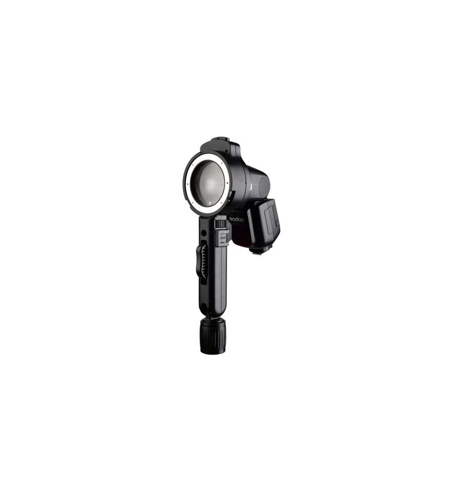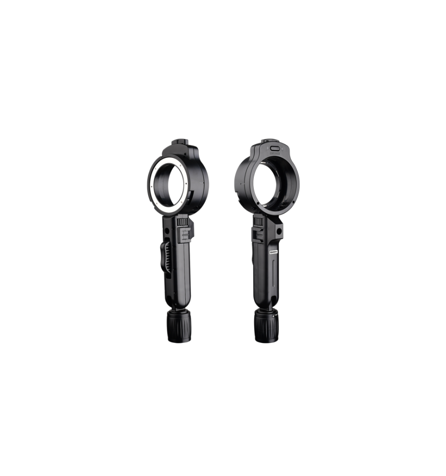 El adaptador C SMDV + empuñadura angular es un adaptador C combinado con una empuñadura angular para uso con flashes Speedlight. El ángulo del Angle Grip es fácilmente ajustable, por lo que puede ajustar fácilmente la dirección de la luz del flash.
