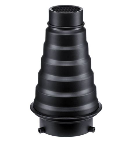 Un modificador que permite un enfoque estrecho de luz sobre un objeto. Snoot tiene un nido de abeja (permanentemente unido) al final.