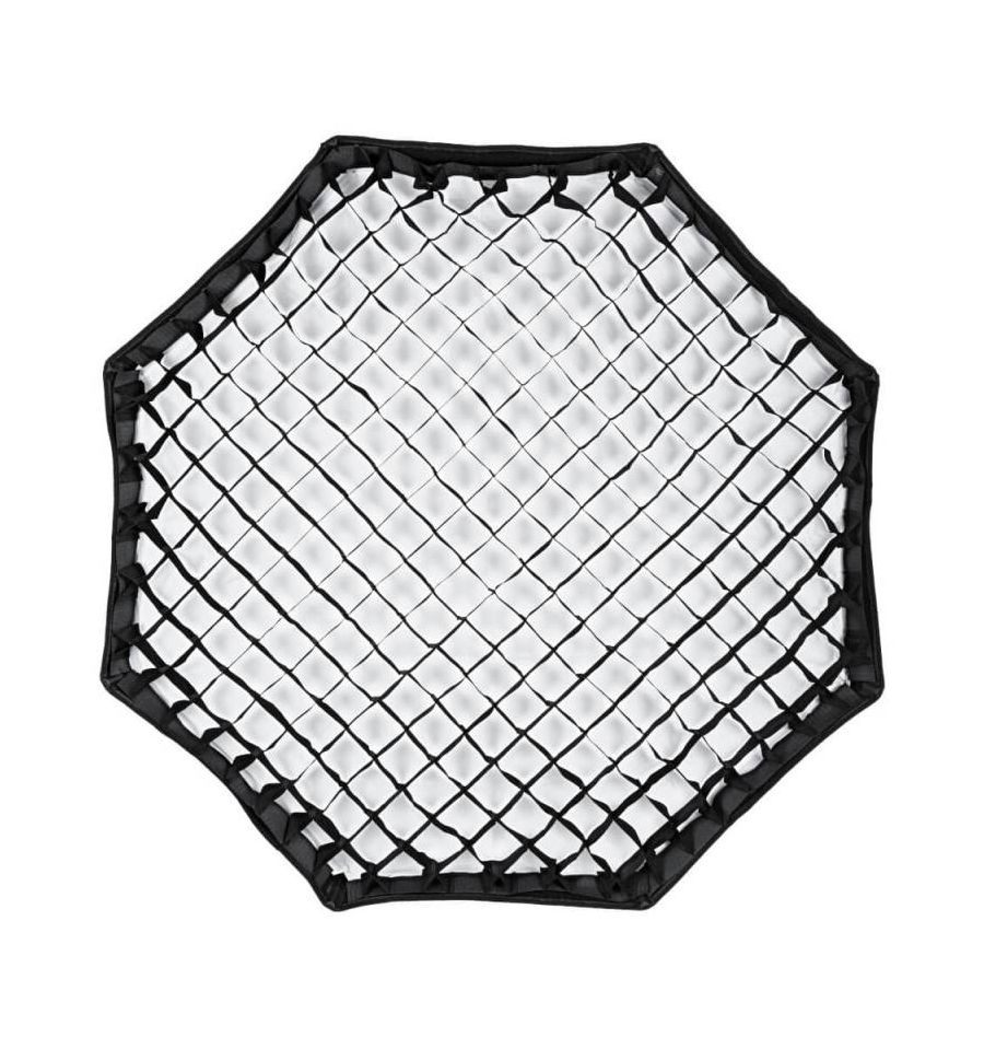 El revestimiento está fabricado en tejido de nailon rip-stop, gracias al cual las softboxes son muy resistentes a los daños mecánicos y, al mismo tiempo, muy ligeros. El interior está cubierto con una capa reflectante plateada de color neutro. Además de la capa difusora principal, softbox está equipado con un difusor interno adicional, hecho de material blanco con un factor de difusión de luz alto. En la parte frontal del softboxz hay una brida para montar el nido de abeja (incluido). Softbox está equipado con un anillo de montaje tipo Bowens.