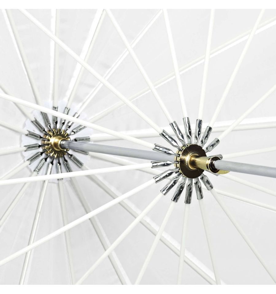 - Las 16 varillas de fibra de vidrio permiten obtener una forma parabólica y una difusión de la luz más uniforme.