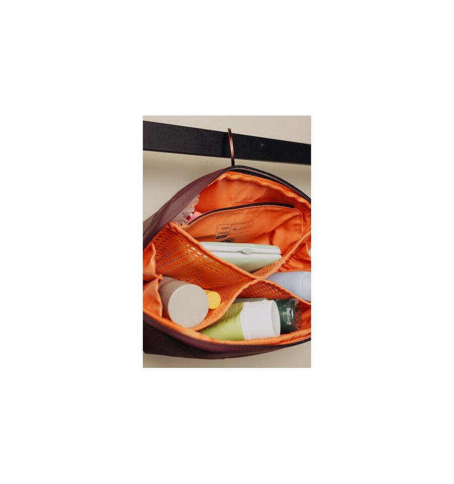 • En su interior, una red de bolsillos de malla de nailon con recubrimiento TPU, un bolsillo interno con cremallera y un compartimento magnético para el cepillo de dientes mantienen todo organizado y limpio.