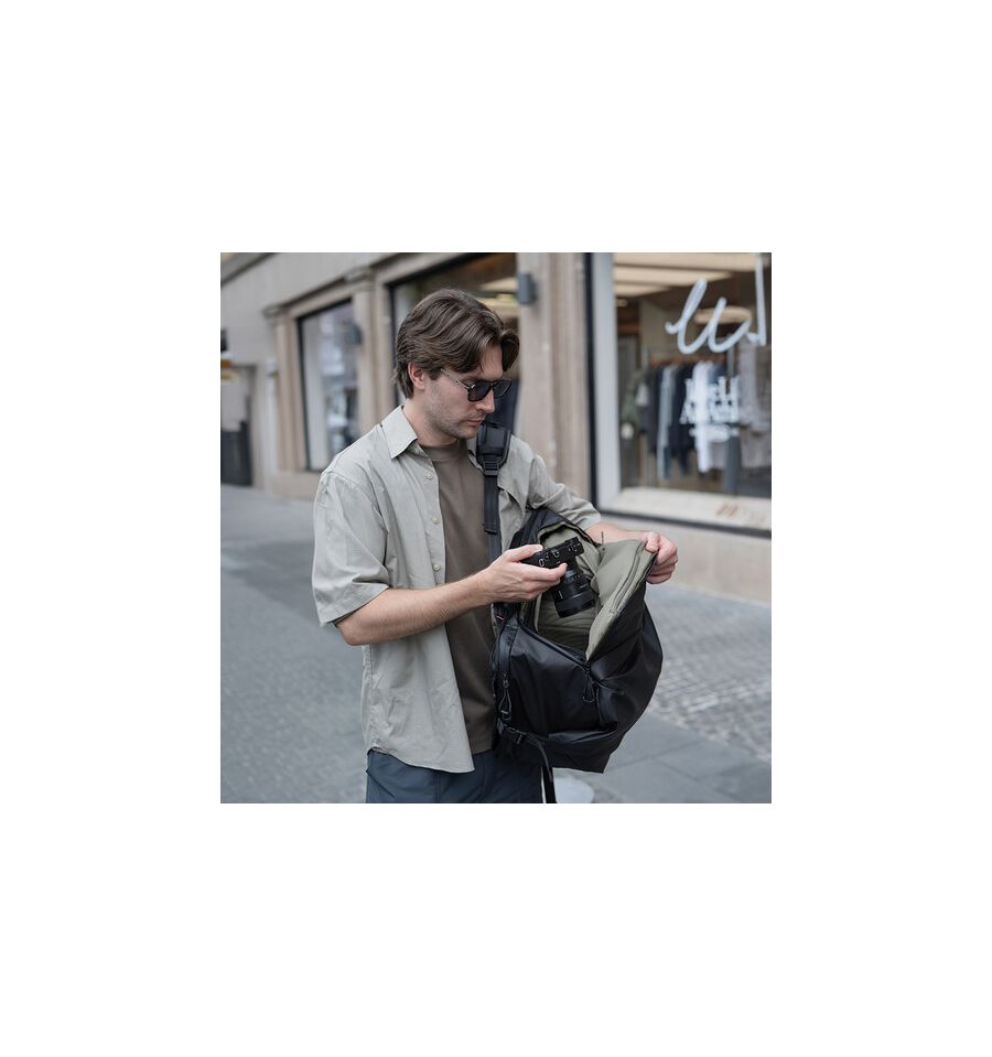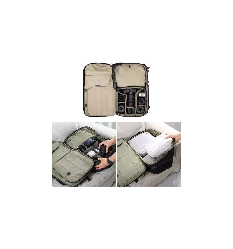 Con un volumen de 35 litros y un atractivo color verde oliva, esta mochila no solo destaca por su estética, sino también por su diseño inteligente. Sus dimensiones de 500 x 330 x 250 mm permiten una distribución óptima del espacio, ofreciendo almacenamiento suficiente para cámaras, lentes y accesorios. Cada compartimento está diseñado para maximizar la funcionalidad, garantizando que tu equipo esté siempre organizado y al alcance de la mano.