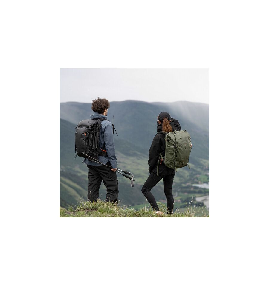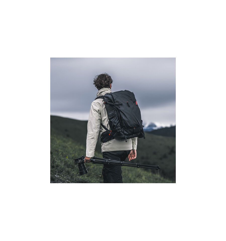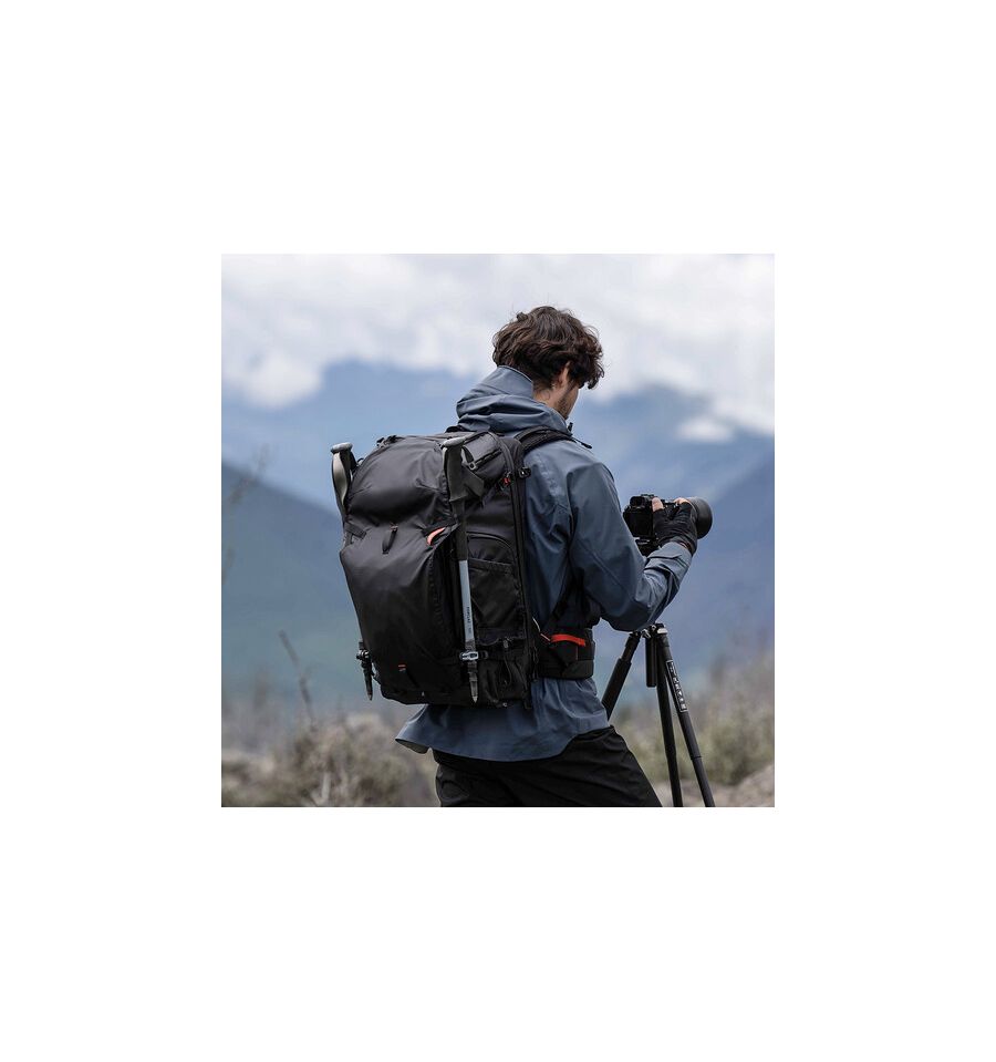 Mochila de 35L diseñada para transportar más equipo fotográfico. Ofrece compartimentos personalizables y es resistente al agua, ideal para sesiones más largas o viajes. Perfecta para cámaras, lentes y otros accesorios. Dimensiones: 480 x 300 x 190 mm