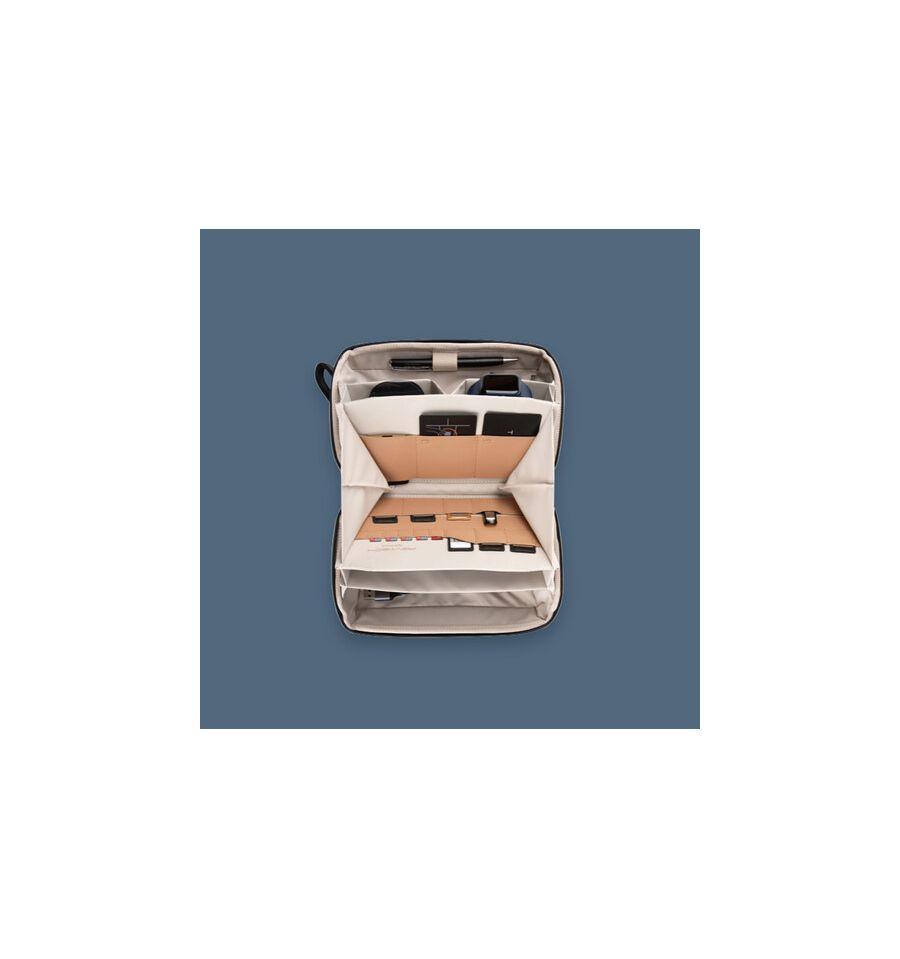 La versatilidad de este organizador lo convierte en un accesorio indispensable para estudiantes, profesionales y aventureros. Su diseño compacto (dimensiones de 19 x 13 x 8,5 cm) permite que se ajuste fácilmente en mochilas, maletines o incluso en el asiento del coche, asegurando que siempre tengas lo que necesitas a mano. Además, su estética moderna y minimalista lo hace atractivo para cualquier persona que valore el diseño contemporáneo.
