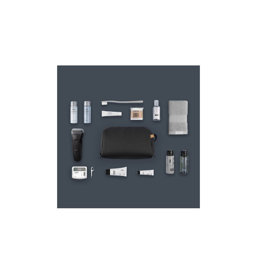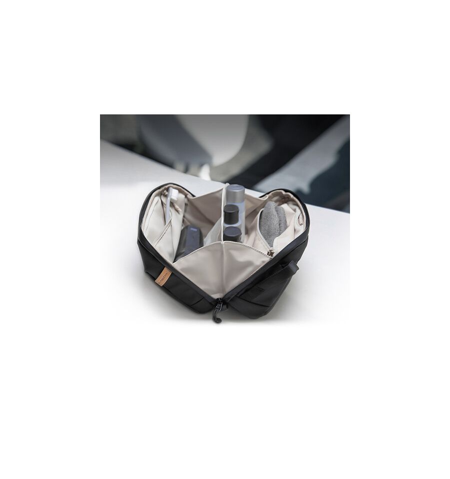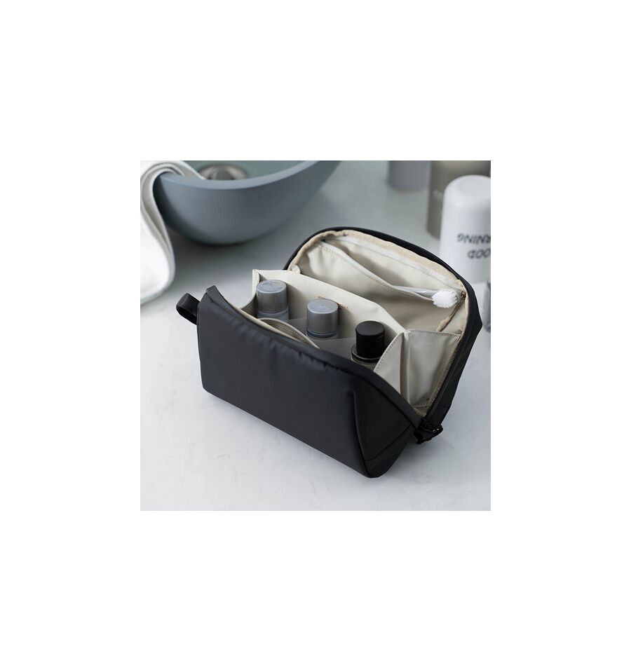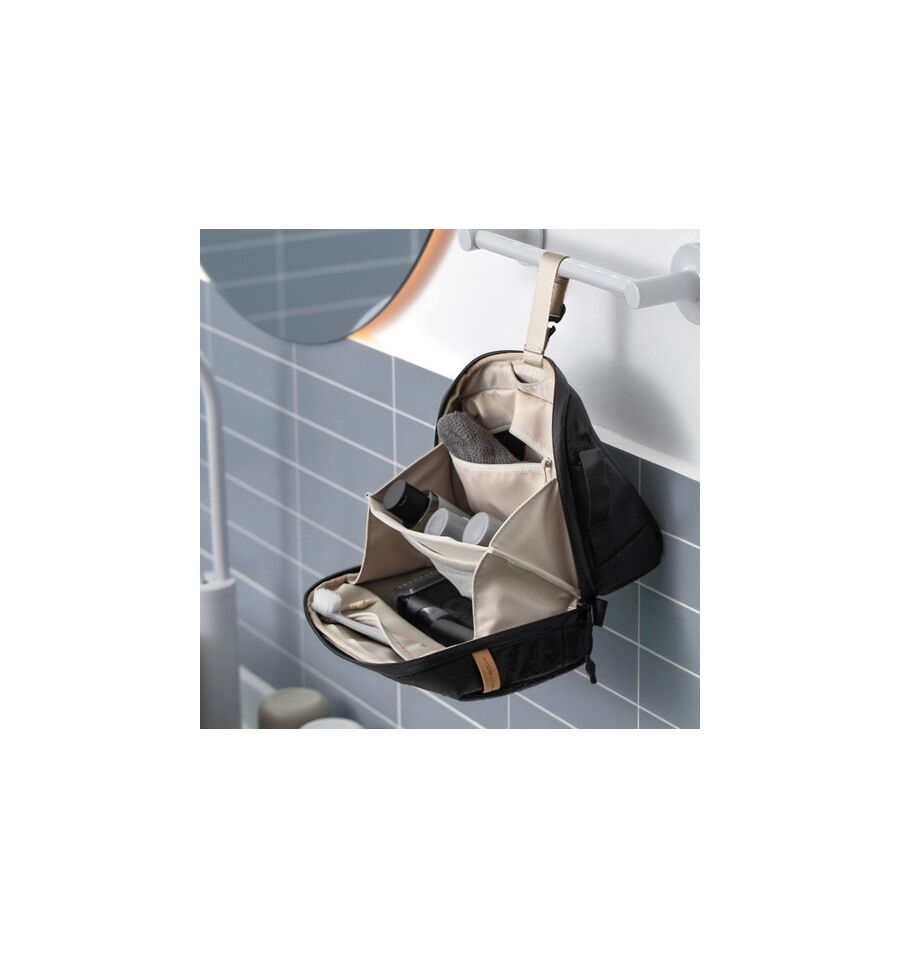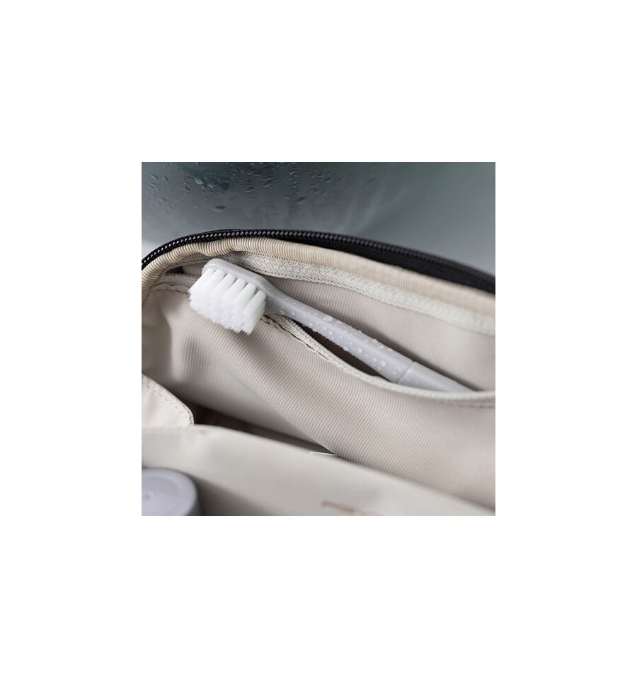 - Bolsillos especiales para cepillo de dientes, maquinilla de afeitar e hilo dental.