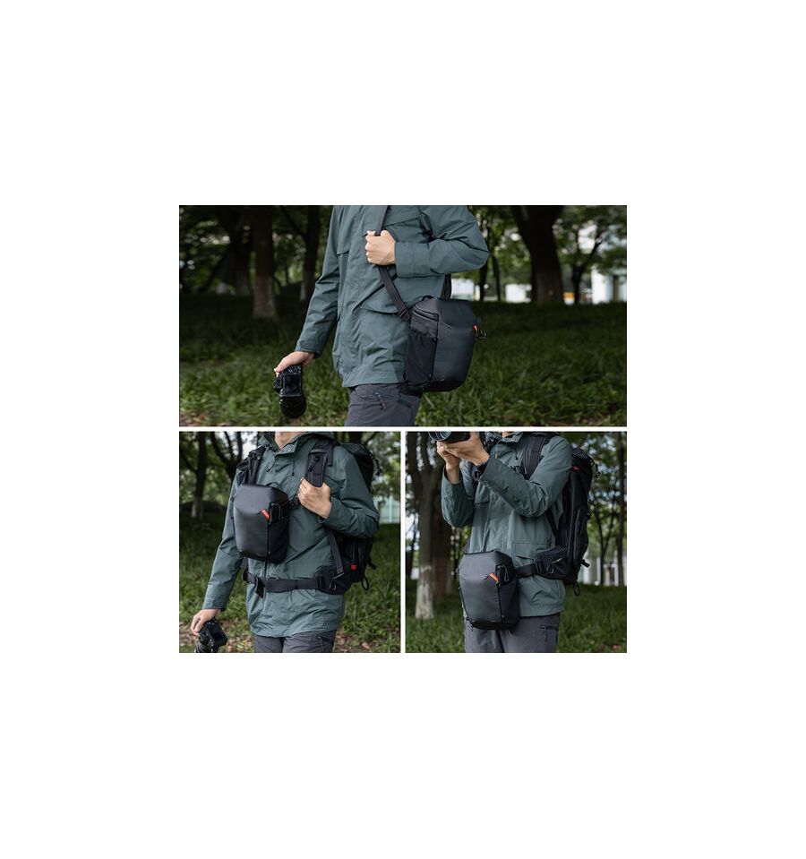 Diseñada como una funda compacta, la mochila permite transportar tu cámara de forma segura, protegiéndola de golpes y caídas. Sus dimensiones de 200 x 170 x 220 mm la hacen ideal para llevar solo lo esencial: tu cámara y un lente, sin el peso innecesario de accesorios adicionales. Esta funcionalidad es especialmente valiosa para aquellos que necesitan moverse rápidamente y capturar momentos espontáneos.