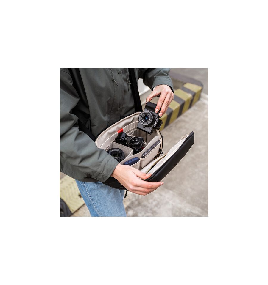 Descubre el bolso de hombro PGYTECH ONEGO SOLO 6 L (NEGRO), la solución perfecta para los amantes de la fotografía y el vídeo que buscan un accesorio que combine estilo y funcionalidad. Este elegante bolso, diseñado en un sofisticado color negro obsidiana, no solo es un complemento atractivo, sino que también es altamente práctico, permitiendo transportar de manera segura y organizada todo tu equipo fotográfico, dispositivos electrónicos y artículos de uso diario.