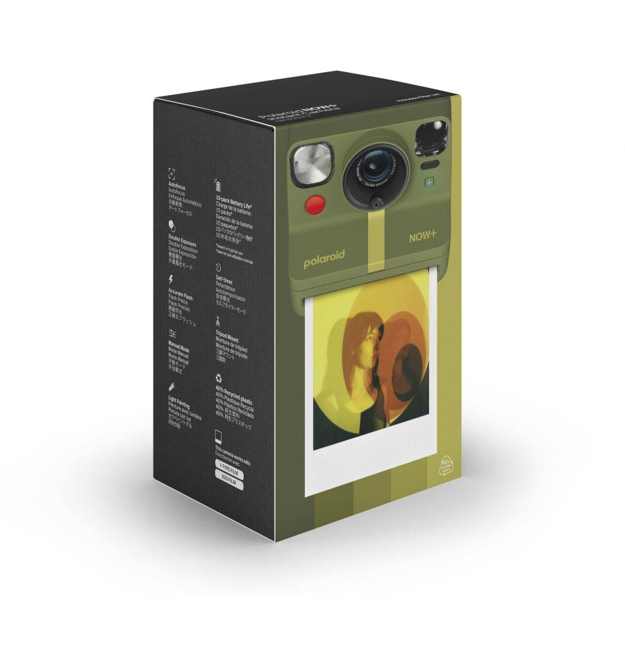La cámara instantánea Polaroid Now+ Generation 2 se puede conectar a la aplicación Polaroid, lo cual te brindará un extenso control creativo: prioridad de apertura, light painting, doble exposición, disparador automático, modo manual y más, además de 5 filtros de lente que puedes conectar a la cámara. Todo con un diseño clásico y ahora fabricado con un 40% de materiales reciclados. Compatible con películas Polaroid i-Type y 600 en el formato de película instantánea Polaroid original.