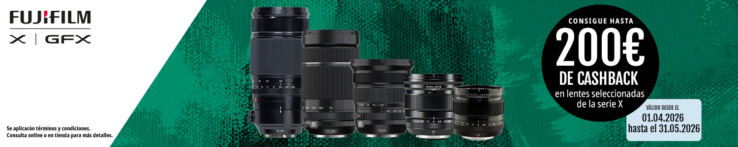 - Las solicitudes de reembolso por compras realizadas durante el periodo promocional pueden presentarse a partir de 4 semanas tras la compra de los productos participantes y deben presentarse antes del 14 de marzo de 2026 en www.fujifilm-x.com/es-es/promotions/.