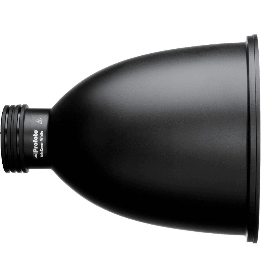 El reflector TeleZoom blanco Profoto pertenece a la gama de reflectores duros blancos de Profoto, diseñados para producir una luz distintiva, intensa y clara con sombras delicadas, y ofrecen una dispersión extensa de luz que facilita un difuminado con contraste moderado.