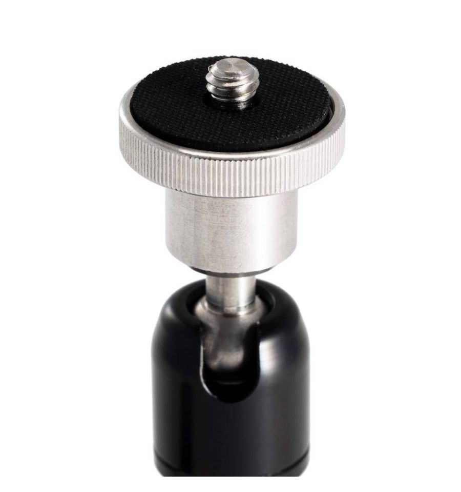 El adaptador 1/4'' antideslizante incorpora una placa circular de acero inoxidable con un conector de rosca de 1/4'', y posee una superficie en suave goma texturada, ideal para un montaje seguro de gran variedad de accesorios como monitores externos, luces LED, micrófonos y otros más, con menor riesgo de soltarse accidentalmente y dañarse.
