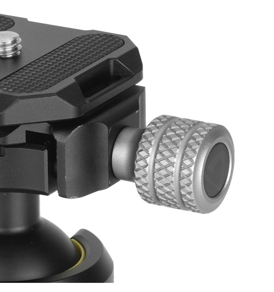 La compatibilidad es máxima gracias a su zapata de liberación rápida QS-45H tipo Arca con tornillo de anillo en D, que permite un montaje ágil y seguro. Es compatible con la mayoría de trípodes y monopies del mercado mediante su rosca estándar de 1/4".