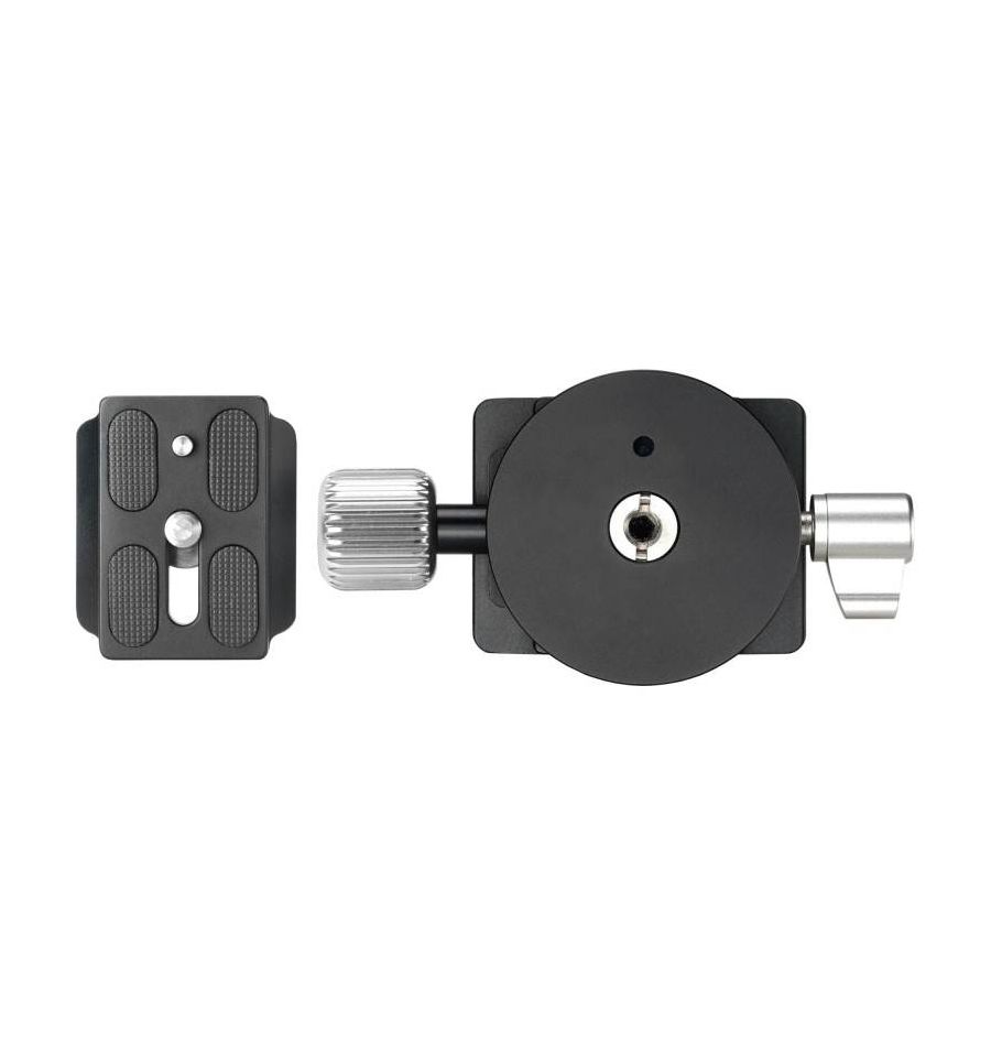 - Permite utilizar un soporte en L o un objetivo largo en cualquier rótula panorámica de 3 vías con facilidad.