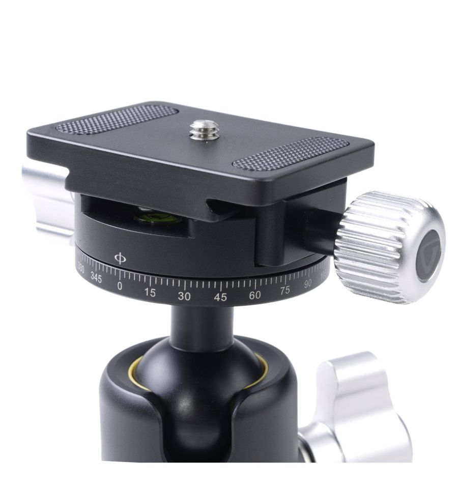 Con una base de 58mm de diámetro y la capacidad de adaptarse a cualquier trípode (ya sea de 1/4" o 3/8"), esta rótula es perfecta para trípodes de tamaño completo, sea cual sea la marca y viene de serie con algunos kits de trípode Veo 3+, Veo 3 y Veo 3T+.