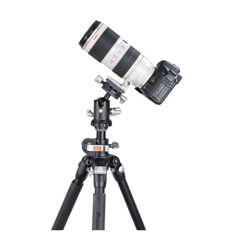 La rótula de doble eje le permite realizar microajustes en el segundo eje, sin necesidad de aflojar la rótula principal y arriesgarse a perder la configuración general. Además, puedes hacer panorámicas en cualquier ángulo en el que esté configurado el trípode.