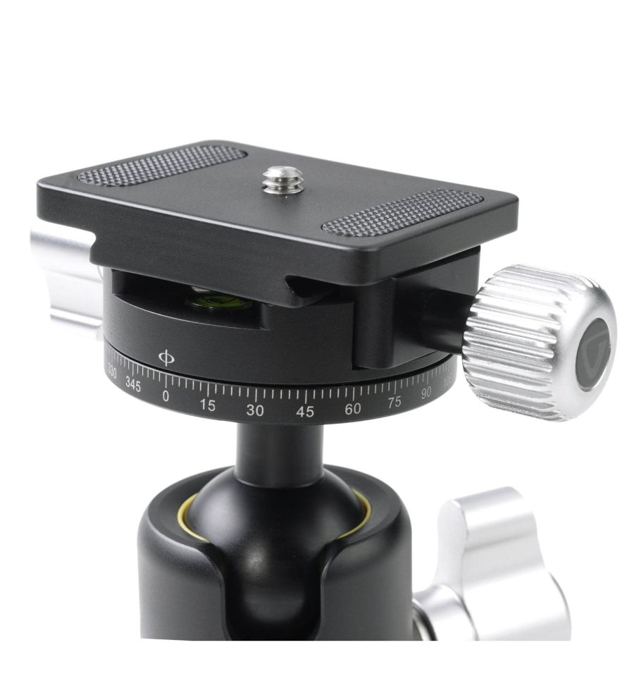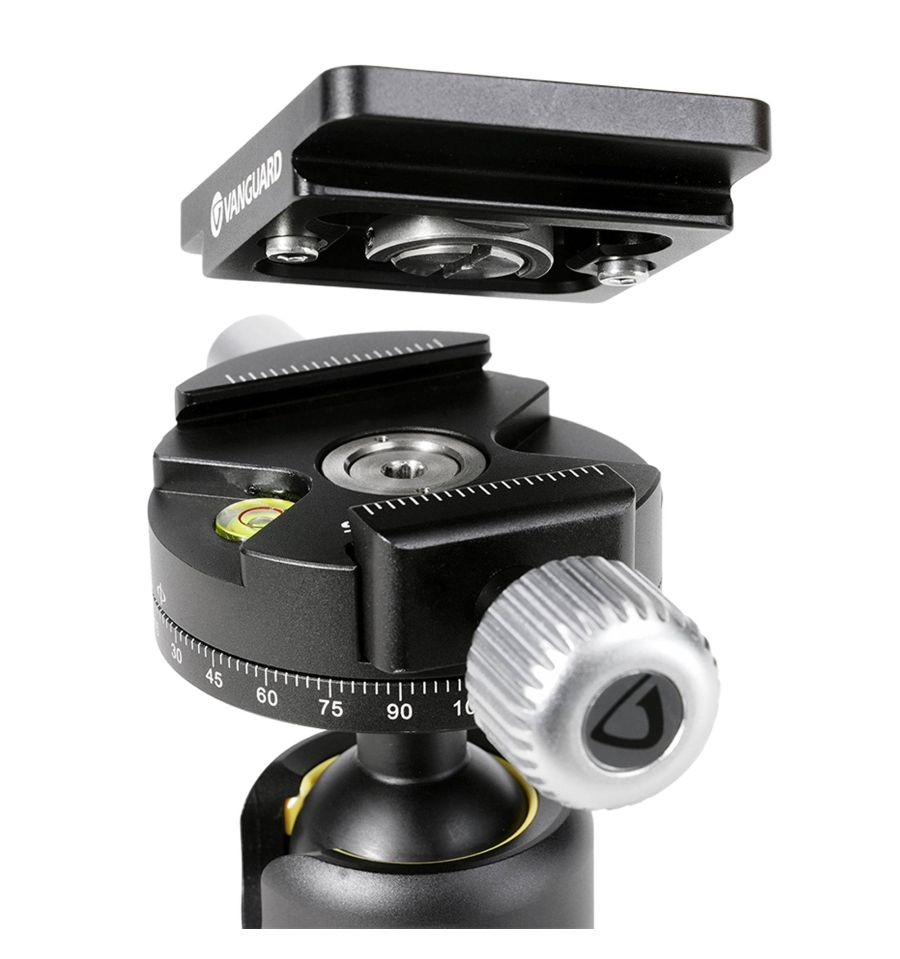 Con una base de 58mm de diámetro y la capacidad de adaptarse a cualquier trípode (ya sea de 1/4" o 3/8"), esta rótula es perfecta para trípodes de tamaño completo, sea cual sea la marca y viene de serie incluida en los kits de trípode Vanguard con patas de 30mm en las series Veo 3+ y Veo 3.
