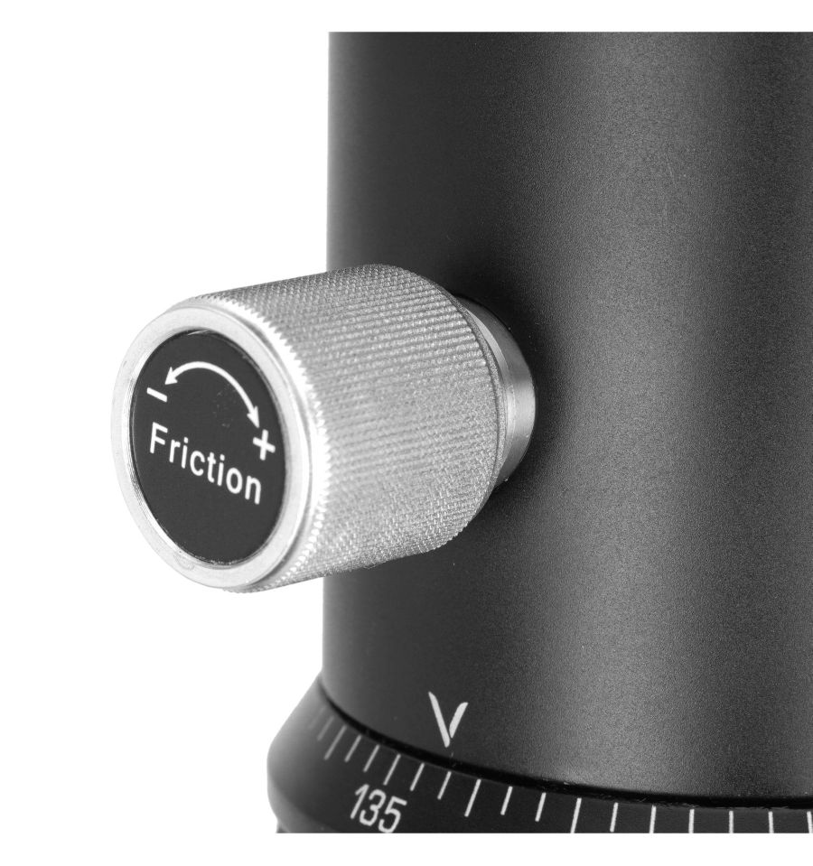 - Perilla de bloqueo para el movimiento panorámico de la rótula y una perilla adicional para ajustar la fricción de este movimiento