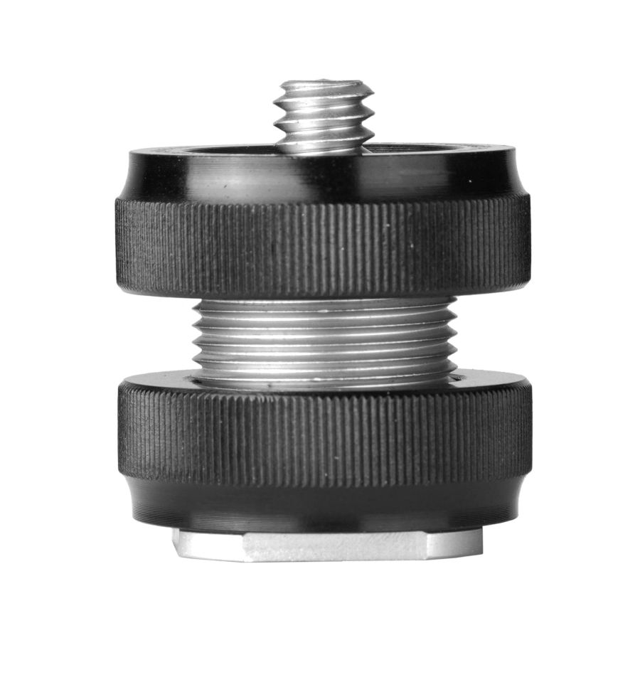 La montura de Cold Shoe CSM de VEO te permite acoplar cualquier accesorio con rosca de 1/4" a la montura de flash de tu cámara.