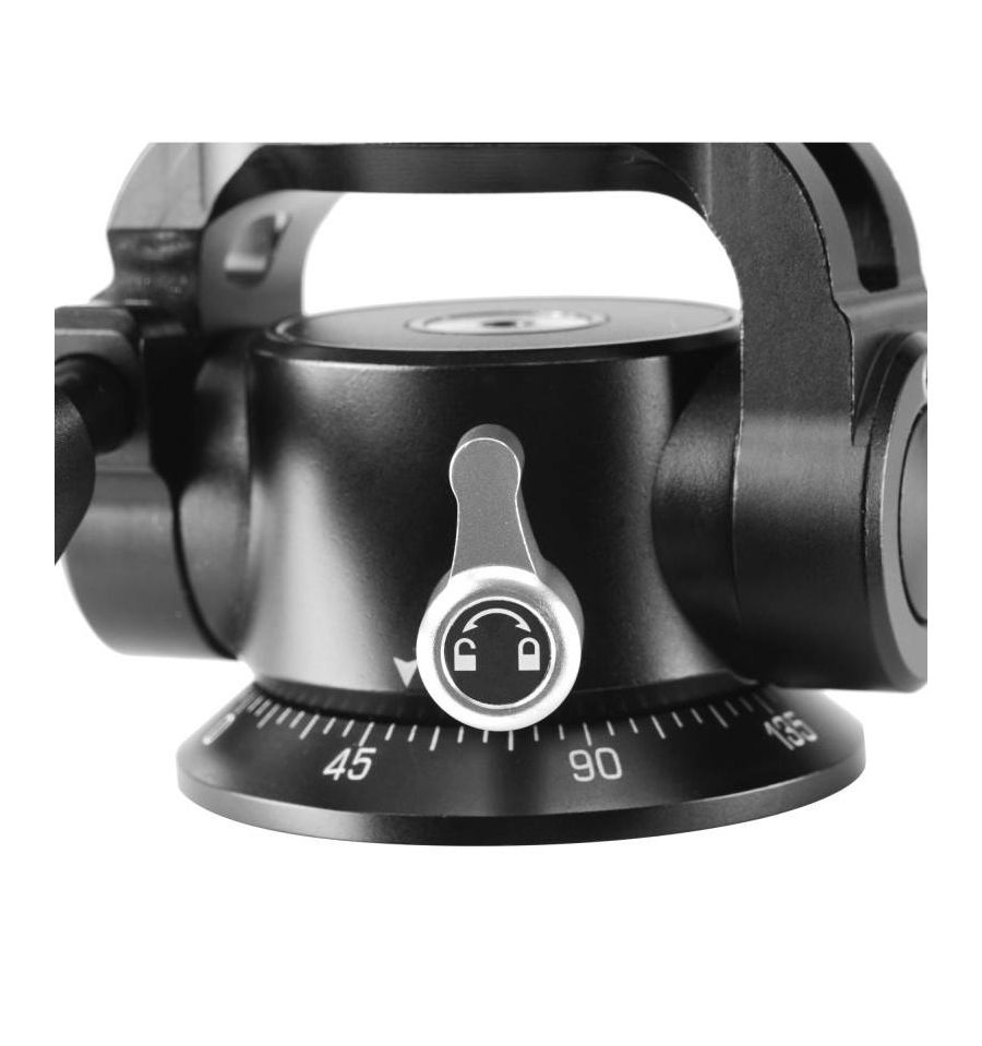 Un bloqueo de panorámica independiente permite realizar una panorámica de 360° para conseguir la panorámica perfecta. El mango superior es giratorio en segmentos de 90 ° muy fácil de desbloquear y bloquear. Algunas de las ventajas de este sistema son la posibilidad de utilizar un soporte en L, crear panorámicas sencillas en terrenos irregulares, mover las manillas juntas cuando se quiere hacer vídeo y la configuración fácil para los fotógrafos zurdos.