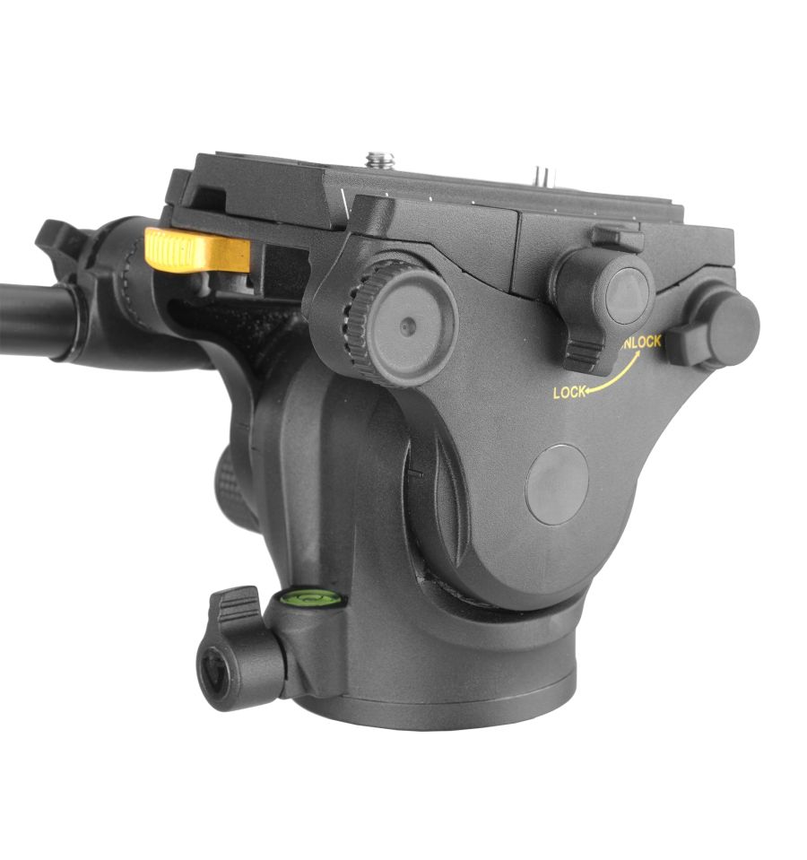 La rótula de vídeo de 2 vías fabricada en aleación de magnesio ofrece una inclinación de hasta 60° y -90°, así como un giro completo de 360°. Con dos manetas extensibles y dos niveles de burbuja, proporciona un excelente control y precisión, especialmente en movimientos panorámicos.