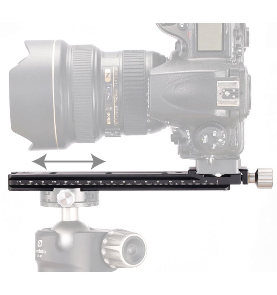 Plato rail nodal Leofoto NR-200 con base de ajuste tipo Arca Swiss. Con tornillo 1/4 y nivel de burbuja. Longitud total de usable de 200 mm incluye tornillo sin fin. Esta indicada para encontrar el punto nodal para fotografía panorámica. Dimensiones de 227mm x 28mm x 38mm. Peso de 172 gramos.