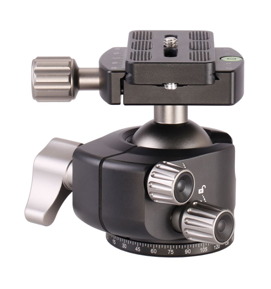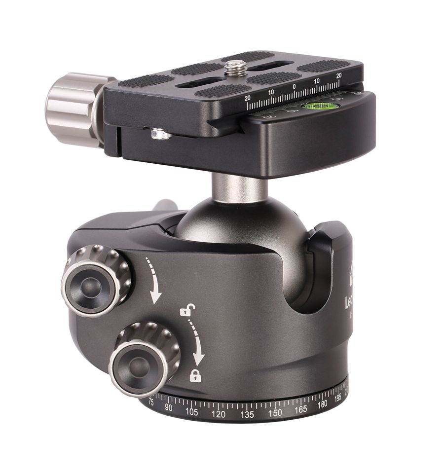 Rótula de bola LH-40 + QP-70 de LEOFOTO. Bola de precisión de 40mm de diámetro. Con movimiento muy suave. Incluye zapata extraible tipo Arca Swiss. Mando de presión, Mando de bloqueo y Mando panorámico independientes.
