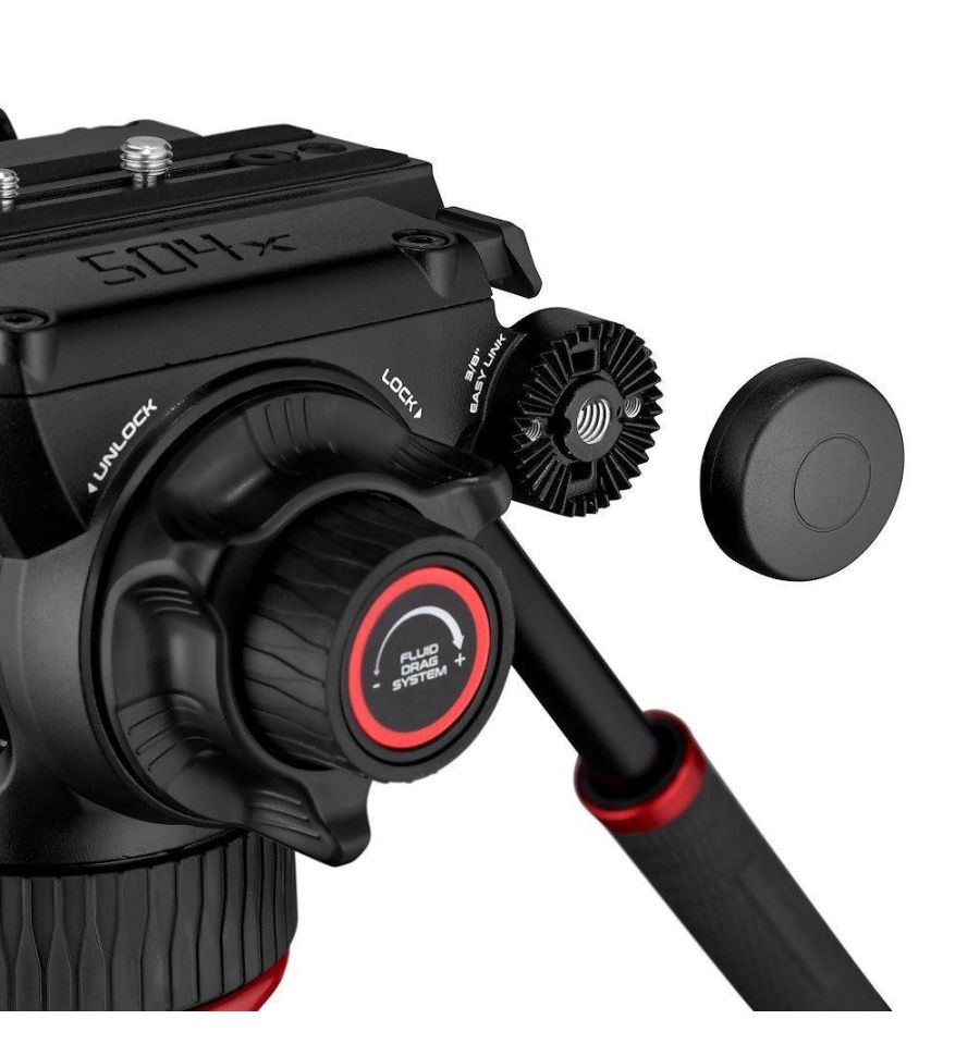 La rótula 504X integra un sistema de fluido variable continuo (Fluid Drag System - FDS) tanto en el movimiento de paneo como en el de inclinación vertical (tilt), marcando un nuevo nivel de prestaciones en la gama Manfrotto, para lograr los movimientos más suaves y libres de vibraciones hasta la fecha. Es capaz de funcionar en condiciones extremas, entre temperaturas de -30 a +60°.