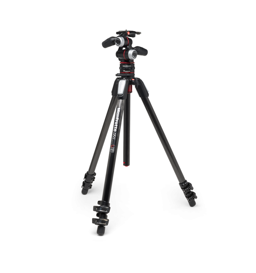 Exclusivo trípode 055 de fibra de carbono de 3 secciones con rótula X-PRO 3-way junto al nuevo sistema de liberación rápida MOVE.