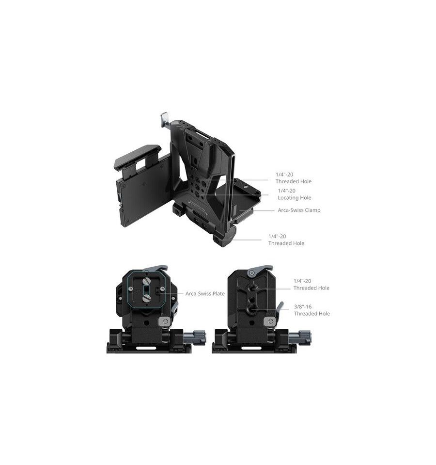 Añade un sistema compacto y ligero de montaje de cámara y placa de batería a tu equipo con el sistema de montaje de placa tipo arca ajustable Pro y V-Lock de SmallRig. Este sistema modular de placa plegable está diseñado para cámaras sin espejo y también se adapta a cámaras con pantallas abatibles traseras. Este sistema consta de una placa de batería V-lock, un receptor tipo Arca, una placa de liberación rápida tipo Arca y un soporte de protección de pantalla LCD modular que puede soportar una plataforma de cámara que pesa hasta 11 lb.