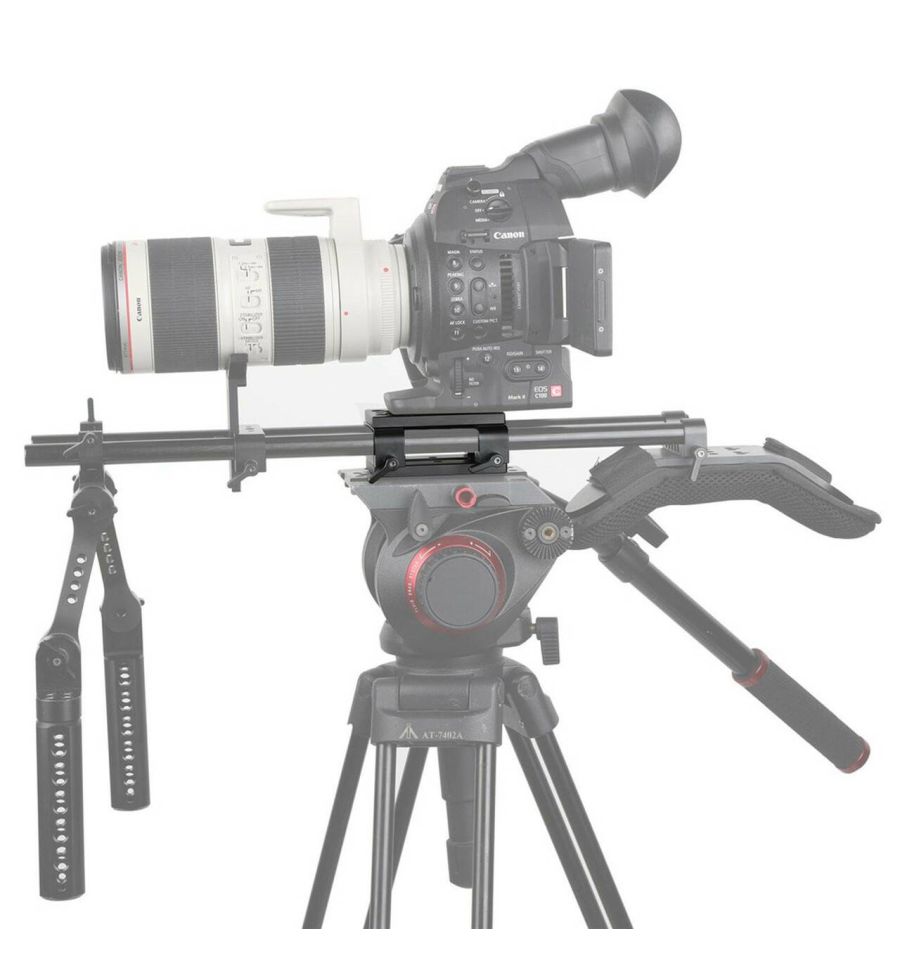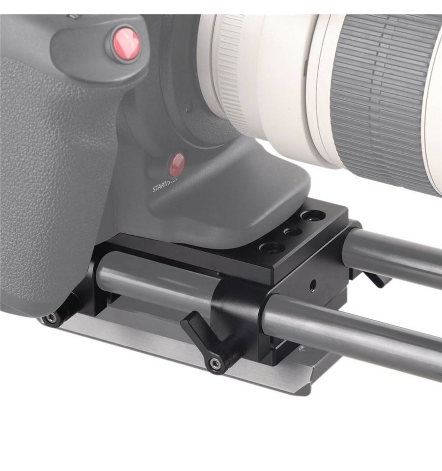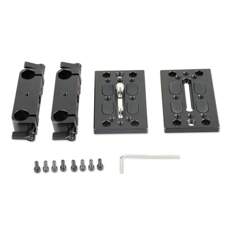 El kit de montaje de trípode SmallRig con bloque de riel de 15 mm 1798 se combina con dos placas de montaje de trípode SmallRig con bloque de riel de 15 mm. Se utiliza para paquetes de cámara de gran longitud y frontales pesados. Conéctelo a la placa del trípode con un tornillo de 3/8''-16 y un tornillo de 1/4''-20, luego puede montar su placa base de cola de milano en él. Se sujeta a rieles de 15 mm para la fijación de accesorios, como enfoque de seguimiento, caja mate, etc. La ranura de 40 mm permite equilibrar correctamente una cámara frontal pesada en su trípode.