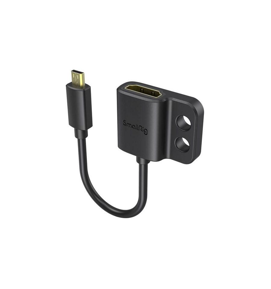Utilice un cable HDMI tipo A con la jaula o equipo de su cámara con este cable adaptador ultradelgado HDMI hembra tipo A a macho Micro-HDMI tipo D de SmallRig . El cable adaptador cuenta con un conector HDMI tipo A hembra en un extremo y un conector Micro-HDMI tipo D macho en el otro extremo para adaptarse a una variedad de cámaras.