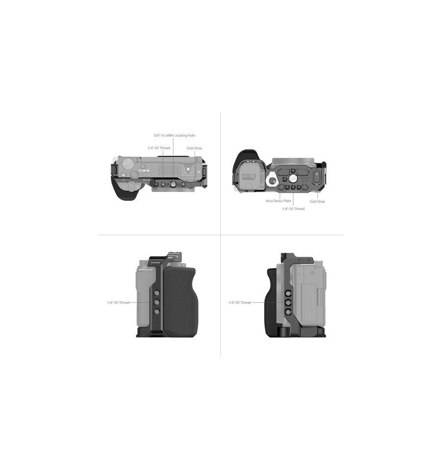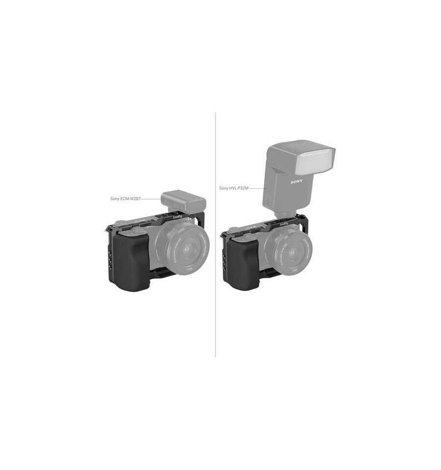 Añade accesorios a tu cámara mirrorless Sony ZV-E10 y mantenla portátil con este kit de Cage/jaula de cámara SmallRig + mango superior. El kit incluye un armazón de cámara completo con una empuñadura de silicona extraíble y un pequeño asa superior. La Cage/jaula cuenta con múltiples roscas de montaje y soportes de zapata y deja acceso abierto a todos los puertos y componentes, y el mango superior cuenta con dos soportes de zapata.