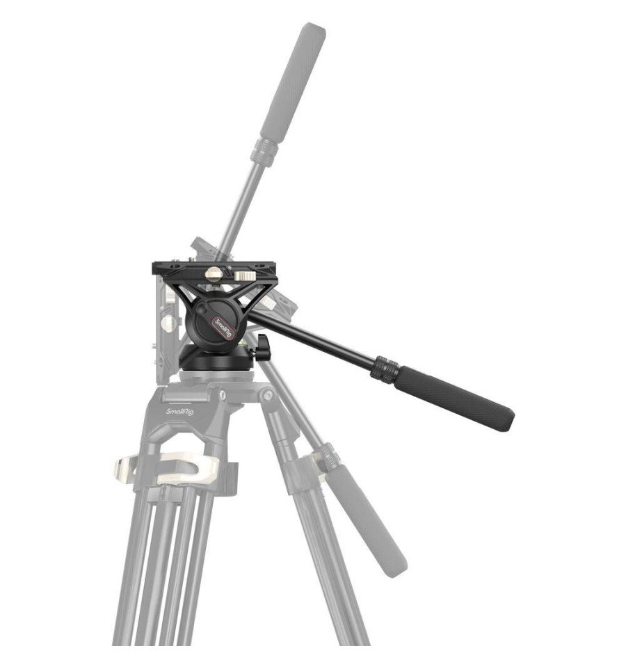 El cabezal duradero puede soportar hasta 17,6 lb (aunque se recomienda un máximo de 11 lb cuando se inclina), puede moverse 360° e inclinarse +90/-75°, y la placa de liberación rápida cuenta con una ranura para tornillo de cámara para acomodar múltiples tornillos de montaje. Otras características incluyen un nivel de burbuja, una rosca de montaje de trípode de 3/8"-16 en la parte inferior y un asa telescópica que se extiende de 8,5 a 12,8" de largo.