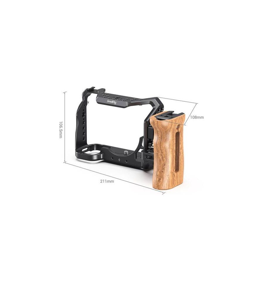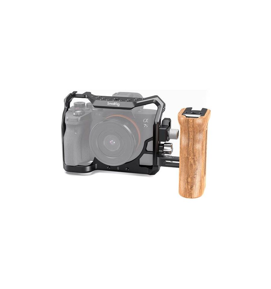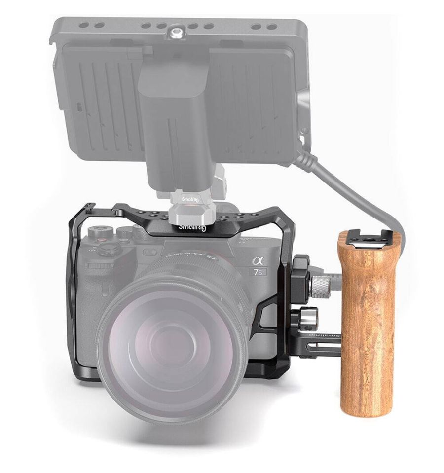 El kit de armazón de cámara profesional liviano de SmallRig proporciona montaje de accesorios y protección para su cámara sin espejo a7S III, e incluye una abrazadera de cable HDMI y una empuñadura lateral de madera.