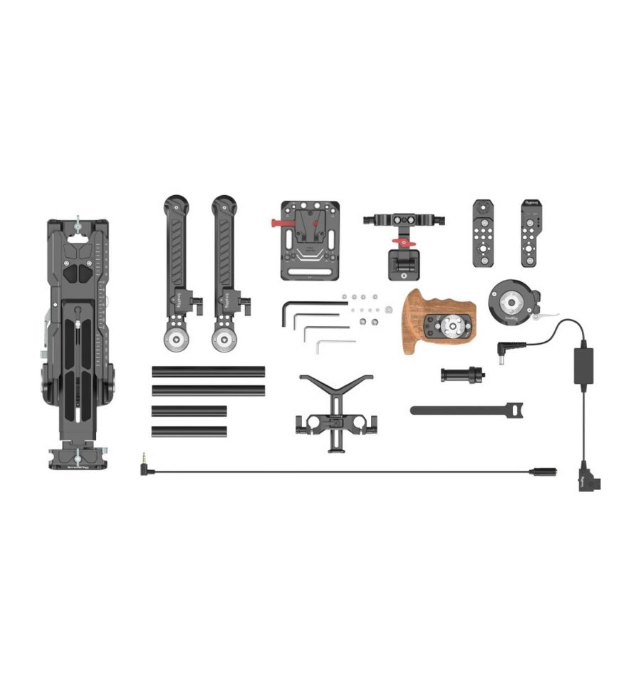 SmallRig Sony FX6 Shoulder Kit 3459 incluye: brazo de extensión 1870 , varillas de 15 mm 1049 y 1050 , hombrera 2837 , placa superior 3186 , adaptador de pantalla LCD 1831 , empuñadura 1891 , placa de batería con montaje en V 2991 , cable de alimentación D-Tap 2932 , soporte de lente 2681. Este kit de hombro para dos manos presenta un mejor control del equilibrio. Su hombrera de espuma altamente elástica se ajusta al arco del hombro para una experiencia de tiro más cómoda. El brazo de extensión con ARRI Rosette proporciona una función de ajuste telescópico, puede ajustar la longitud del brazo según sus propias necesidades. El brazo de extensión 1870 funciona con el adaptador de empuñadura 3403, lo que permite reposicionar la empuñadura original. Hecho de madera de alta calidad, el mango de madera ergonómico se adapta al arco de la palma para un agarre cómodo, y la hombrera viene con un destornillador incorporado para un fácil montaje y desmontaje. Además, las varillas de 15 mm conectan la placa de la batería con montura en V y al cable de alimentación D-Tap, junto con una batería con montura en V, proporciona una solución de fuente de alimentación para disparos prolongados.
