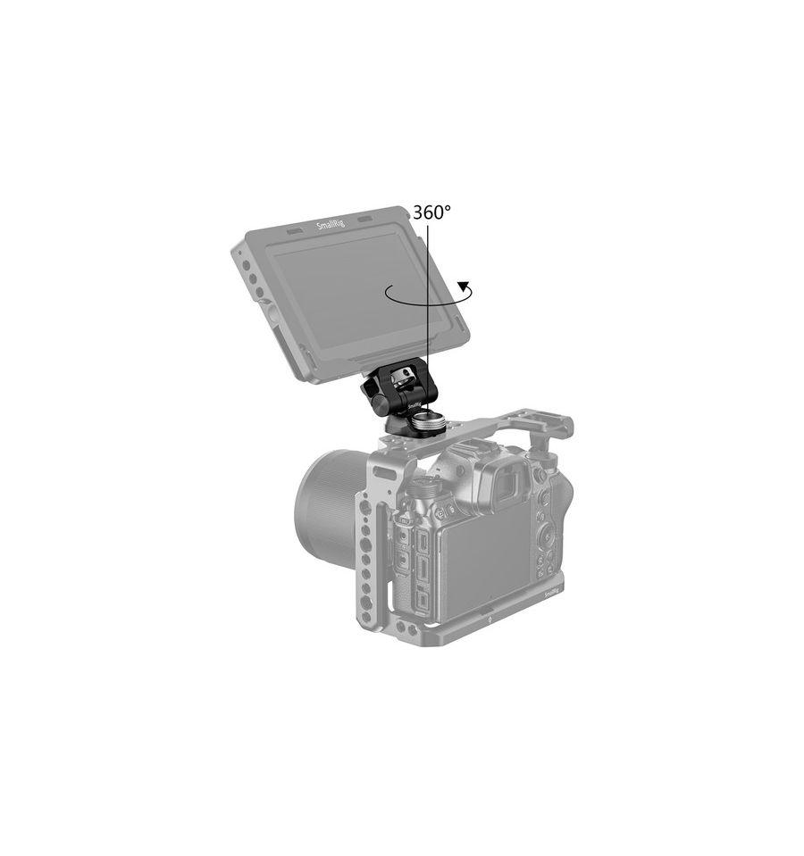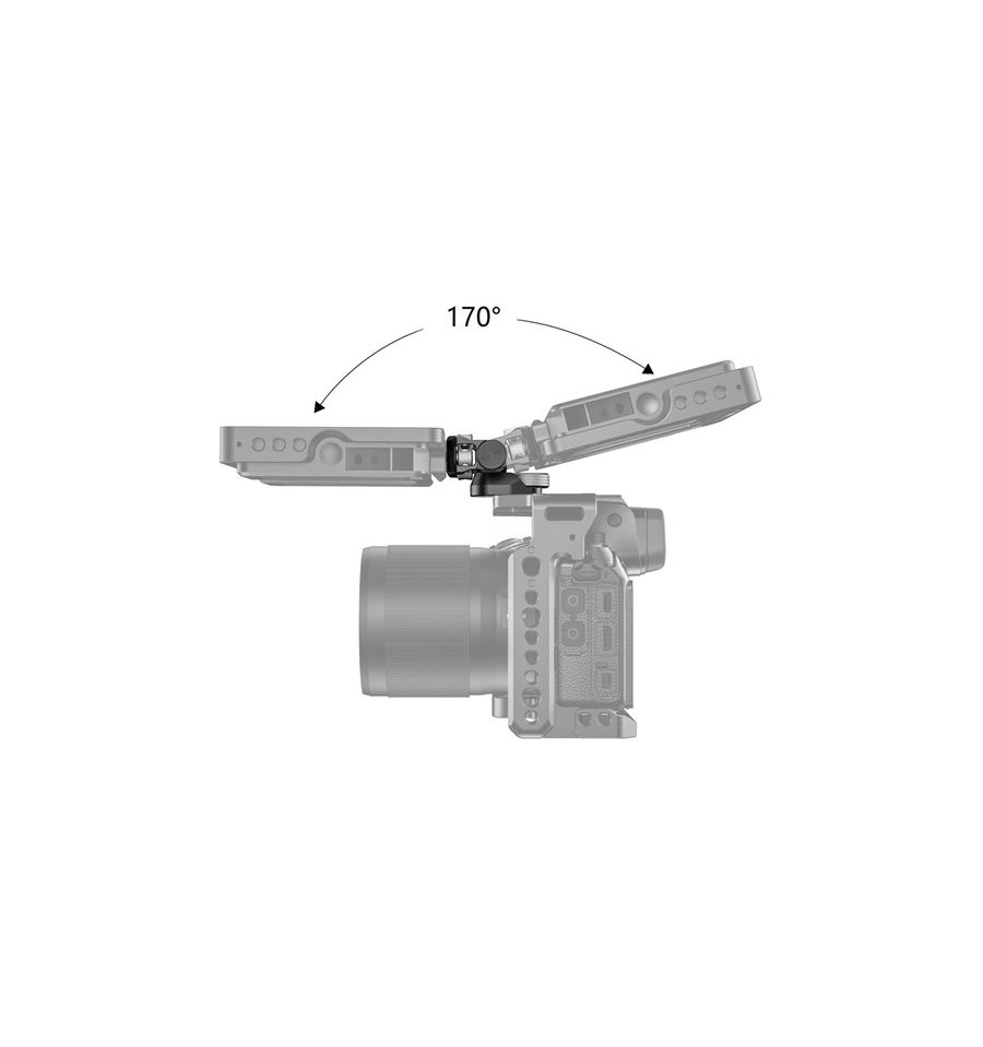 El soporte para monitor giratorio e inclinable ajustable de SmallRig se conecta al equipo de su cámara a través de un soporte estilo ARRI con pasadores de ubicación. Este soporte, que admite un monitor integrado que pesa hasta 2,6 lb, gira 360° y se inclina 170°, lo que le permite colocar su monitor en el mejor ángulo de visión.