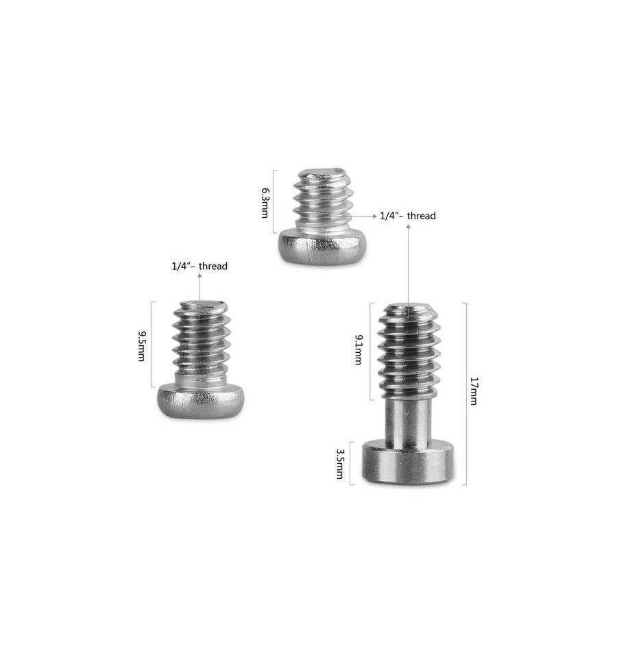 Este paquete de tornillos hexagonales de 1/4'' incluye 4 piezas de tornillos estándar (longitud de rosca de 1/4'', utilizada en la mayoría de las jaulas de cámara SmallRig, como la jaula VersaFrame 1584 ), 8 piezas de tornillos largos (longitud de rosca de 3/8'', utilizado en el montaje de placa de queso 1598 bloque de rieles 942 , riel de la OTAN 1195 , etc.) y una llave hexagonal.