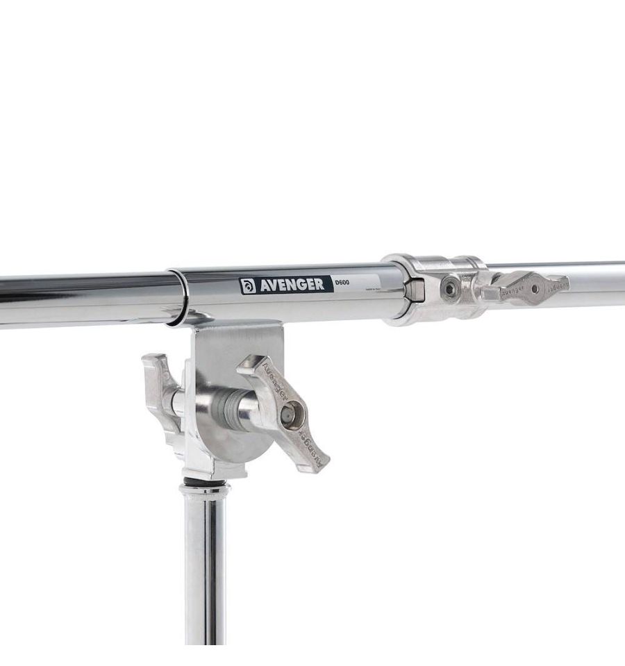 El Avenger D600 Mini Boom en acero cromado es una herramienta extremadamente flexible que le permite extender o hacer de pértiga sobre y alrededor de su sujeto. Tiene un cabezal de agarre incorporado 2,5" (D200) que utiliza una almohadilla de freno para proporcionar movimientos controlados hacia arriba o hacia abajo, una potencia de bloqueo superior y un montaje fácil en cualquier tipo de pie Baby. La espiga o perno soldado de 16 mm/ 5/8 " Baby proporciona un montaje seguro para cualquier soporte con un receptor de 16 mm (5/8"). Coloque un saco de arena en el gancho del extremo posterior para proporcionar contrapeso y estabilidad a sus luces o lo que sea que esté montado en la espiga. Diseñado para aplicaciones de cine, vídeo y fotografía, ya sea en el set o en la localización. El D600 tiene una extensión mínima de 117 cm y una extensión máxima de 212 cm. La carga máxima en la extensión mínima es de 30 kg, mientras que la carga máxima cuando está totalmente extendida es de 7 kg. Utilice la D600 con C-stands (A2030D, A2033F, A2033L), soportes Roller (A5029, A5036CS), soportes Combo (A1035B, A1035CS) y soportes Wind Up (B6030CS, B6026CS). Accesorios recomendados: G200-1, G100-1, E200 si se utiliza la jirafa en un soporte Combo o Wind Up.