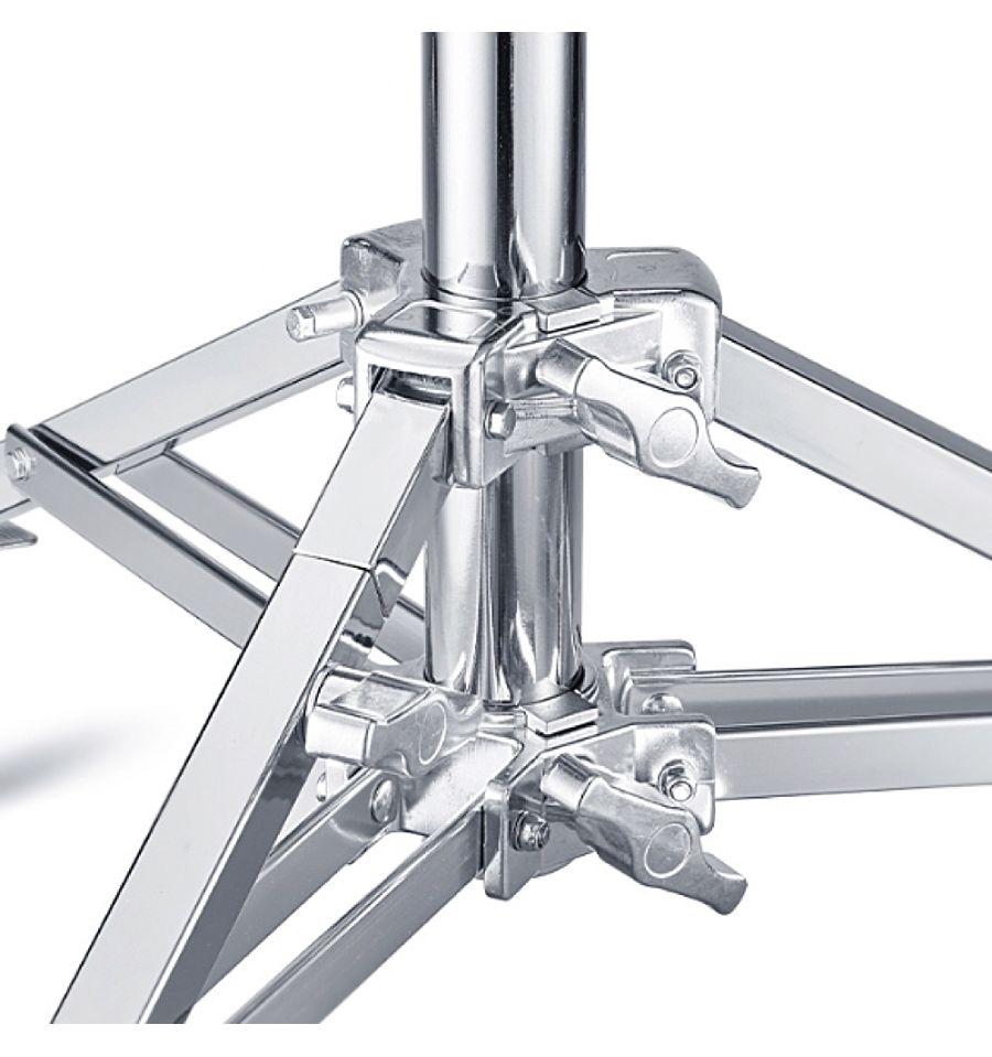 El soporte de rodillo Godox para luz de vídeo SA5015 es un soporte de rodillo cromado con una base baja. Puede fijar fácilmente su equipo al soporte gracias al receptor junior de 1-1/8" o a un pasador retráctil de 5/8" que puede inclinar 90 grados para poder colocar su equipo horizontal o verticalmente. Además, el Godox Roller Stand for Video Light SA5015 tiene una capacidad de carga de hasta 40 kg.
